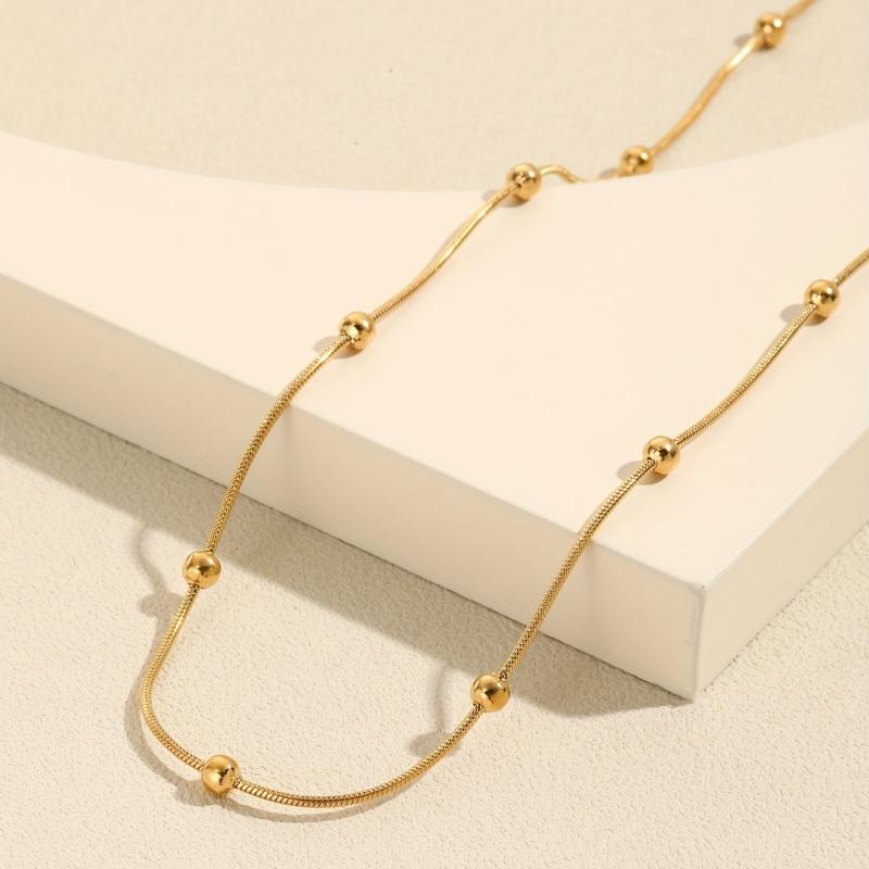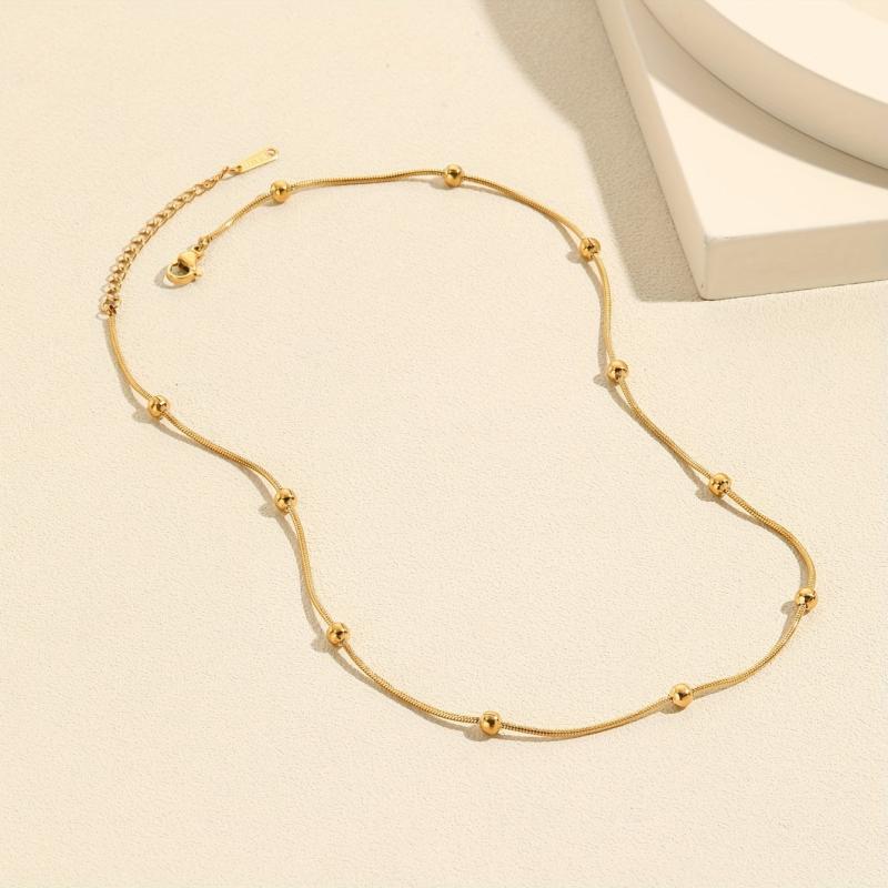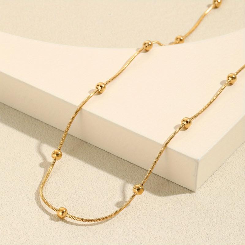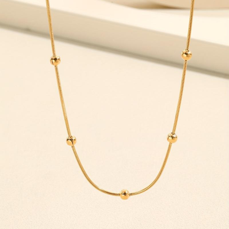 This beautiful necklace features a delicate round bead snake bone chain design. Perfect for adding a touch of elegance to any outfit.