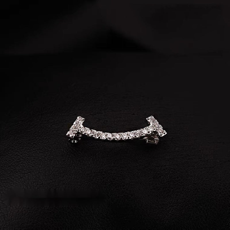 Smiling Shape Brooch Small Rhinestone Delicate Shirt Collar Pin