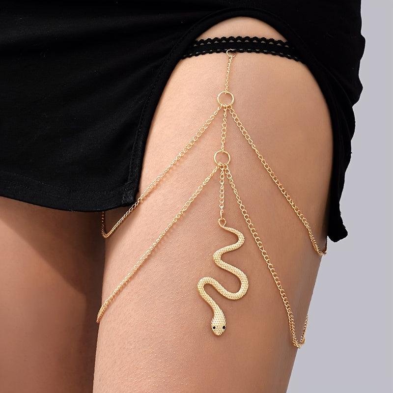 Elevate your summer look with this snake shape tassel leg chain jewelry. Perfect for the beach or nightclub, this body chain is a stylish addition to your outfit.