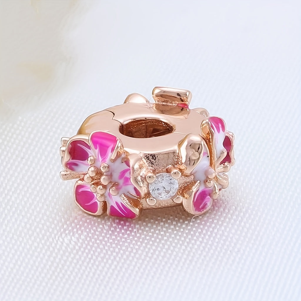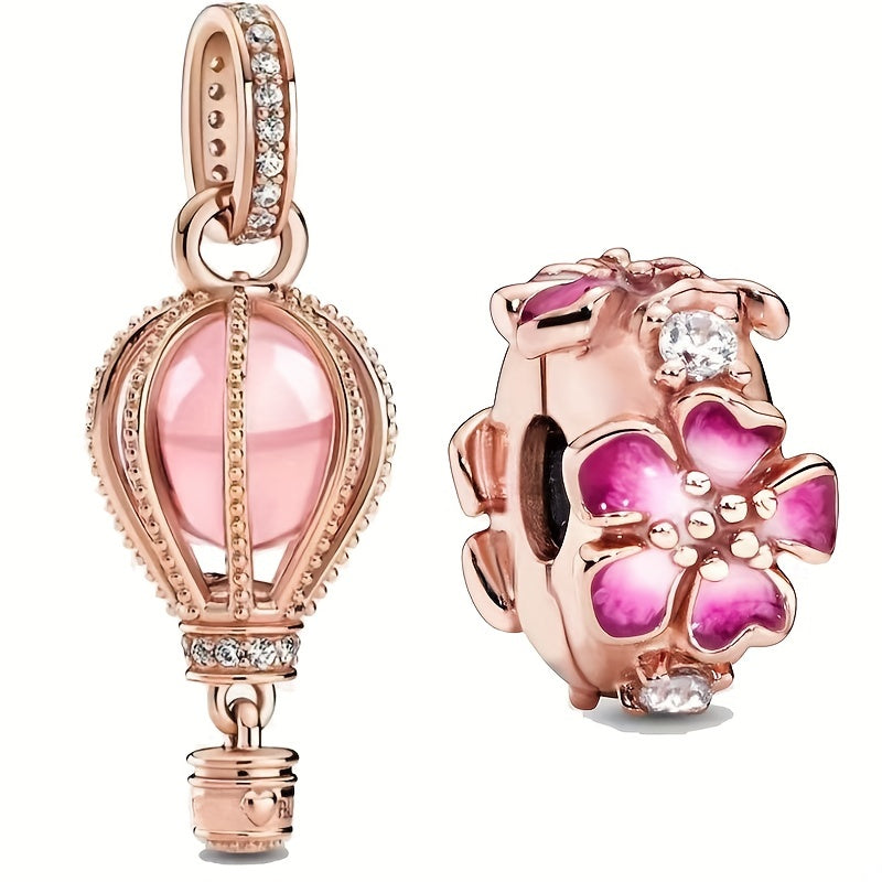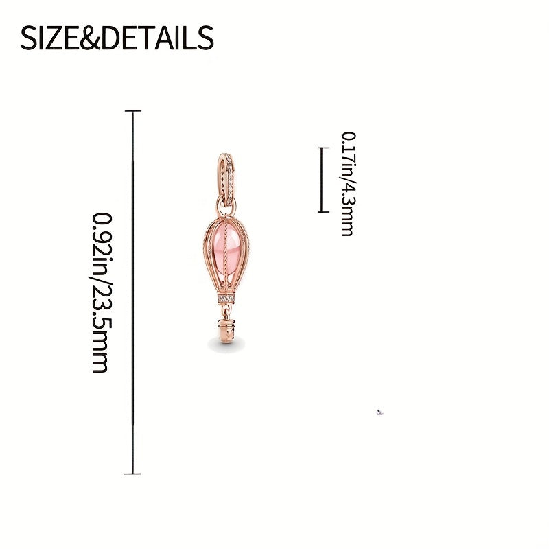 This charming charm features a sparkling pink hot air balloon and a flower rose in a golden setting, perfect for your DIY beaded bracelet creations.