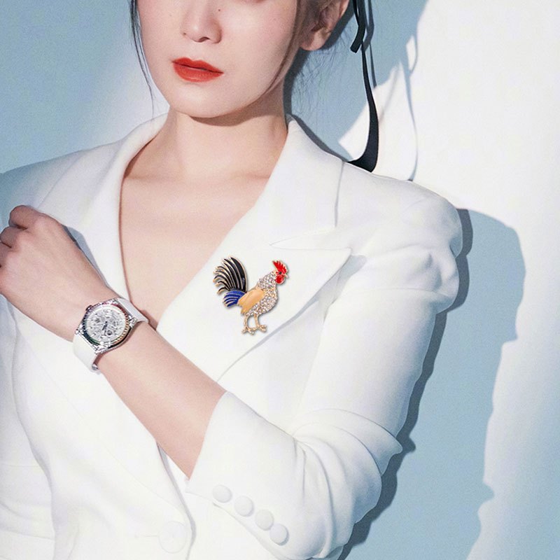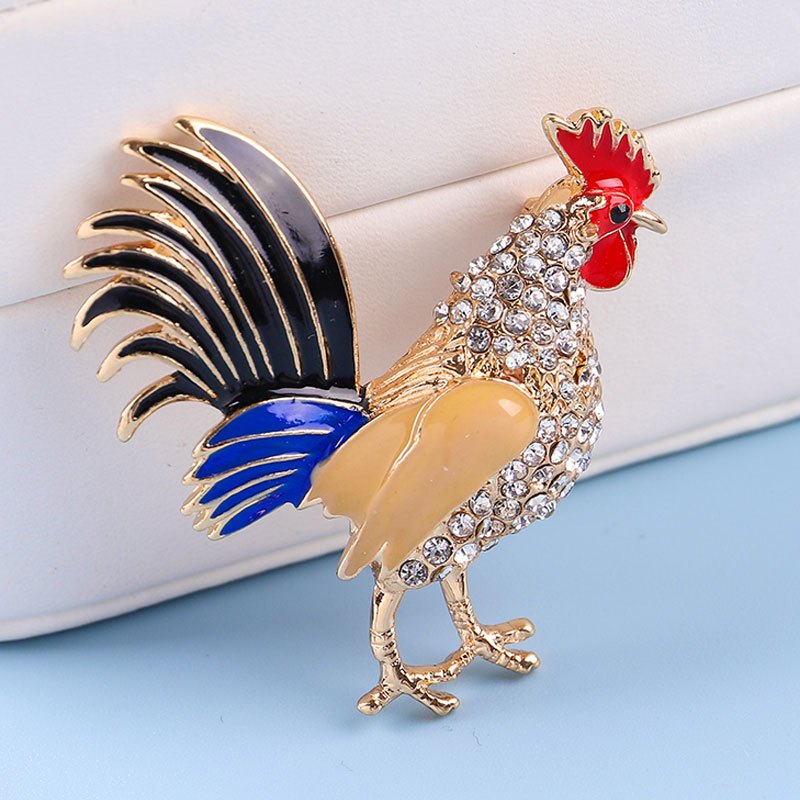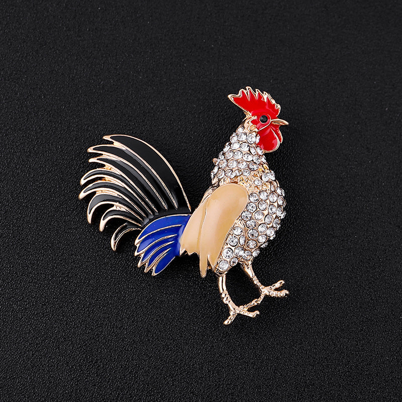 Sparkling Rhinestone Rooster Brooch - Glamorous Outfit Addition