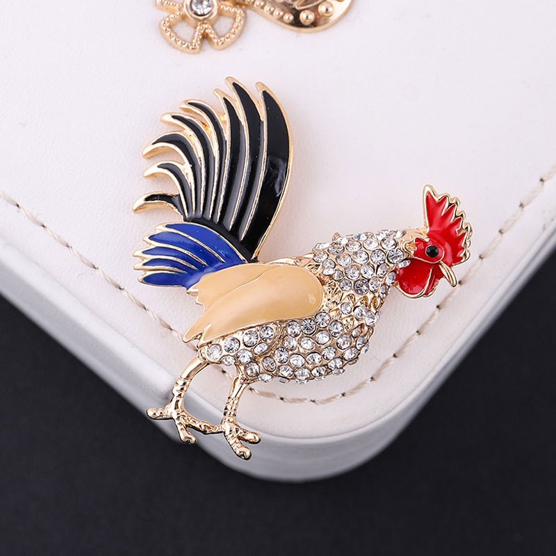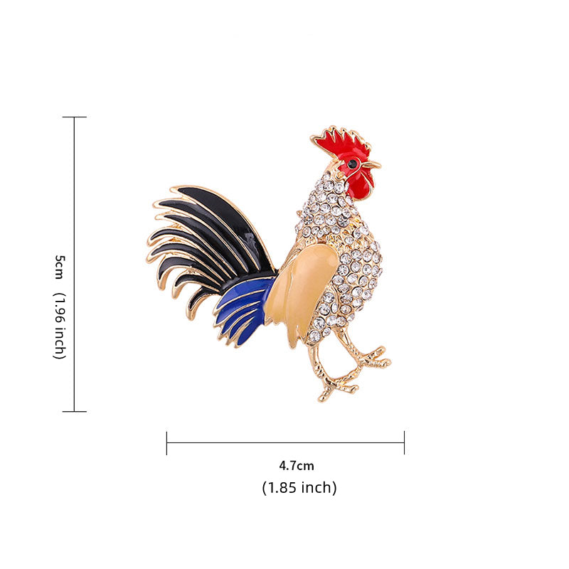 Add a touch of glamour to your outfit with this dazzling rhinestone rooster brooch. Perfect for enhancing your style.