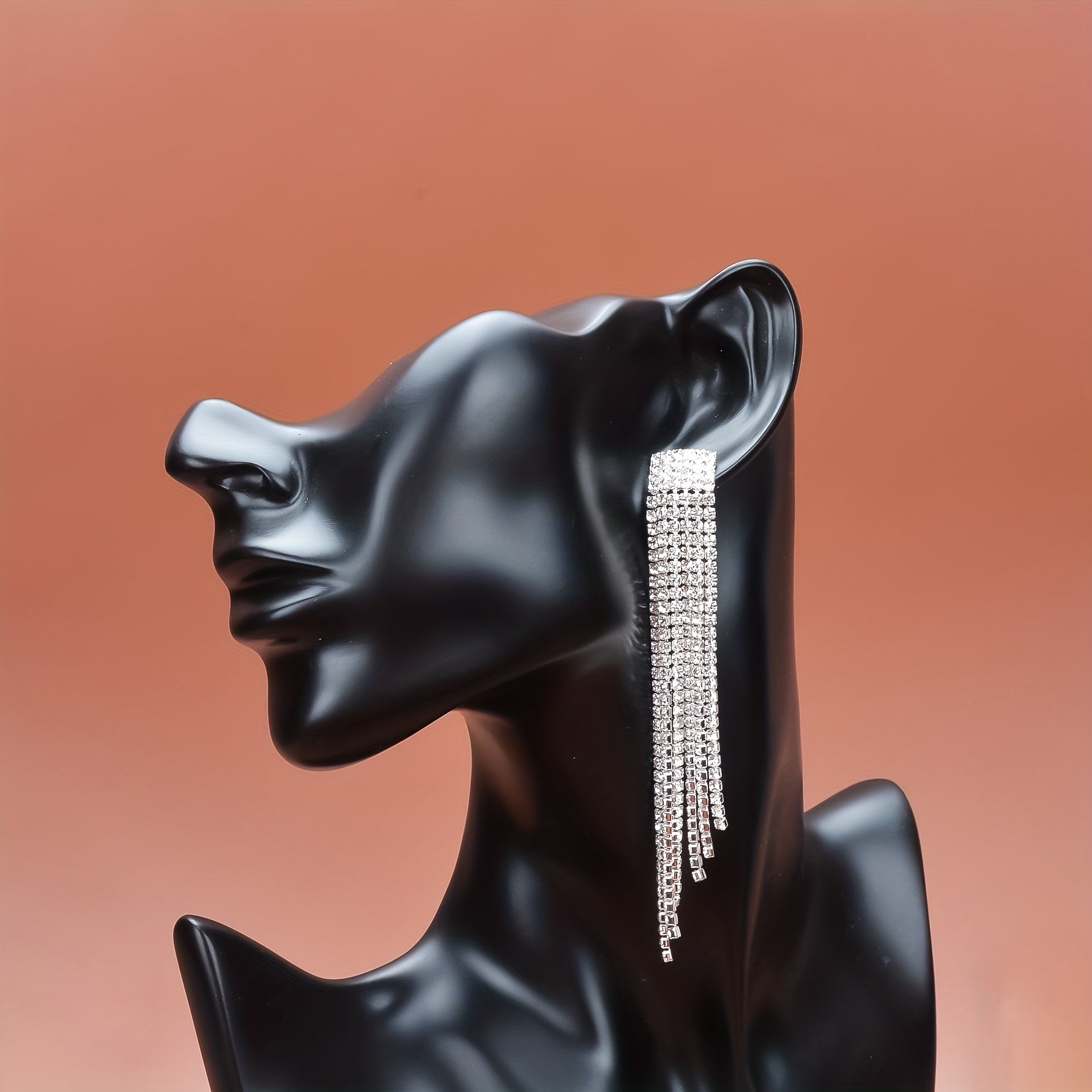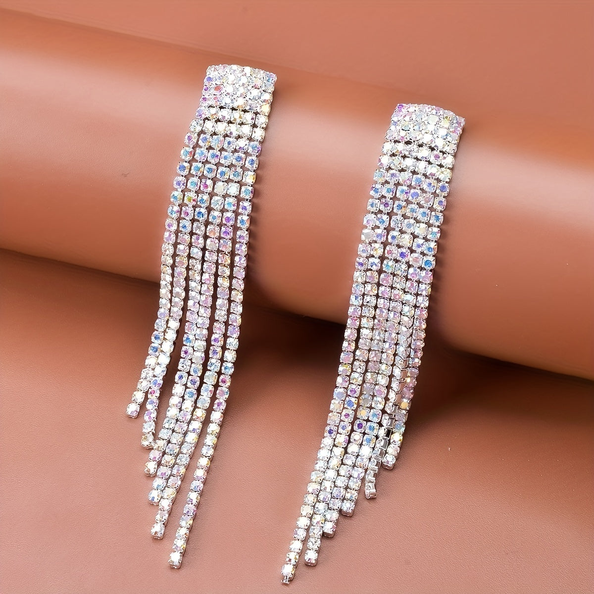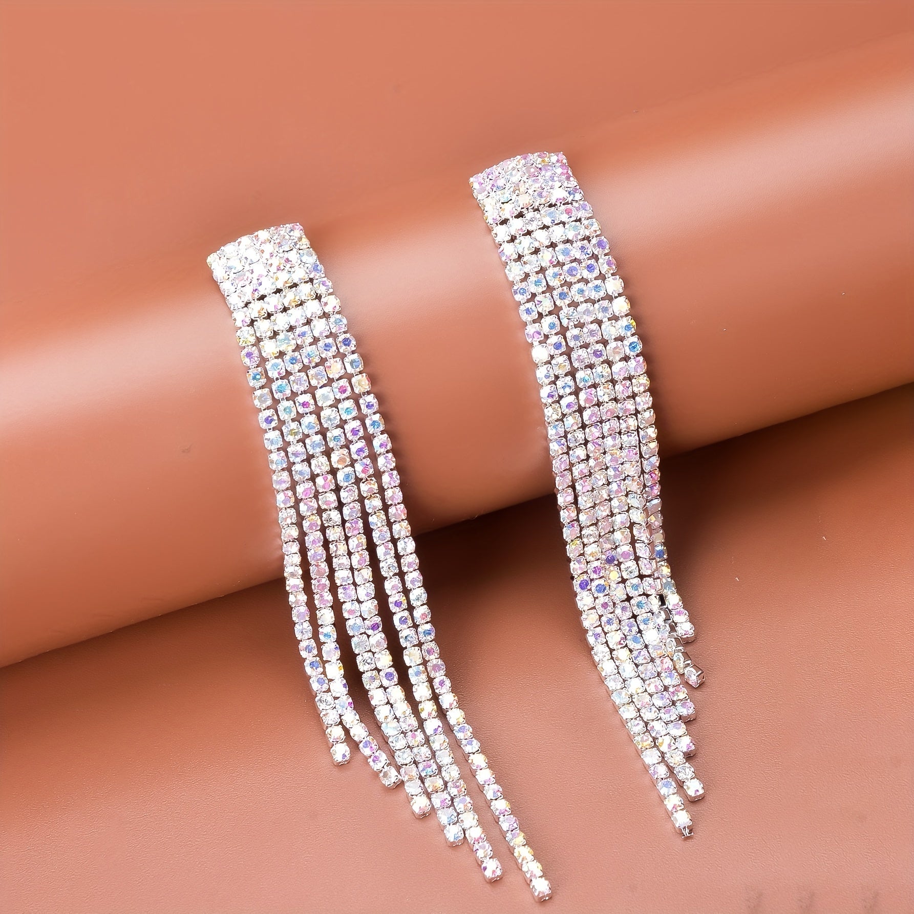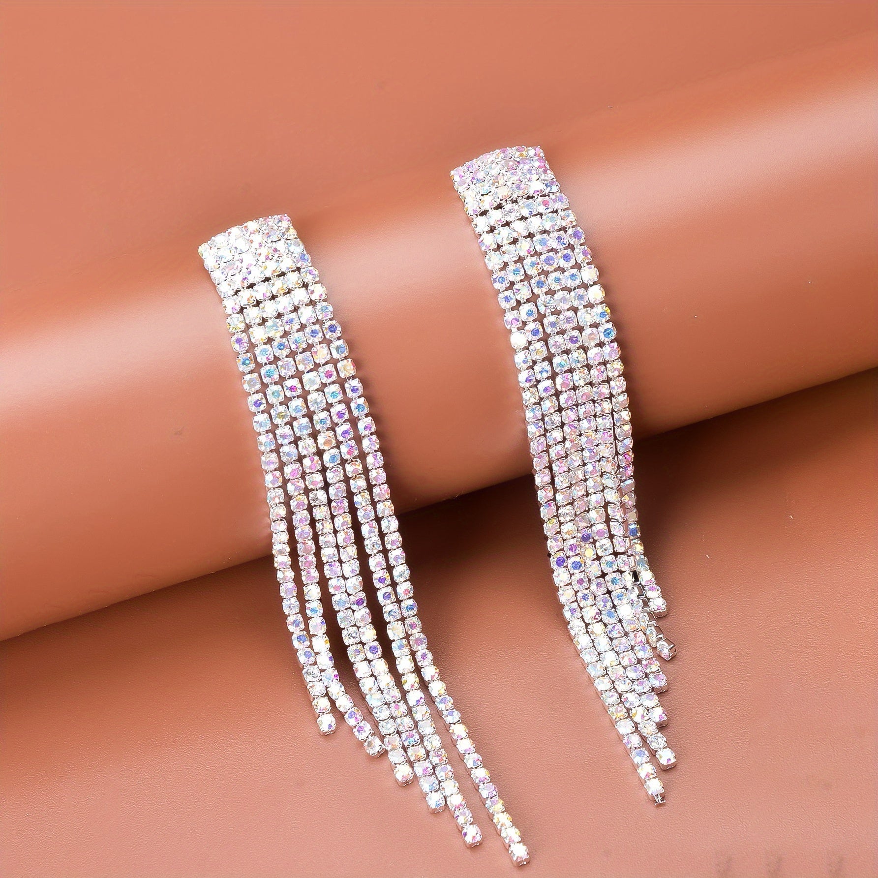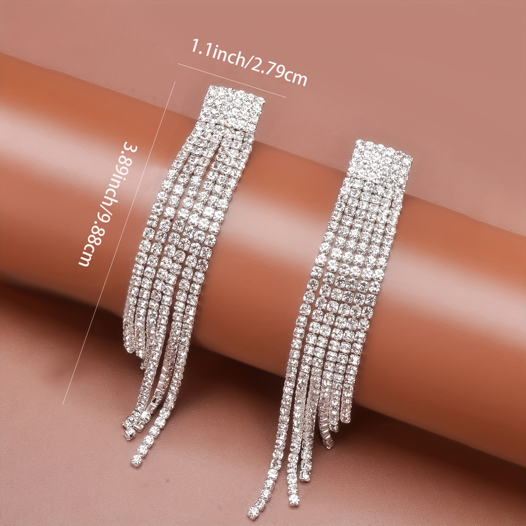 Elevate your style with these elegant tassel earrings adorned with sparkling rhinestones. Perfect gift for females.