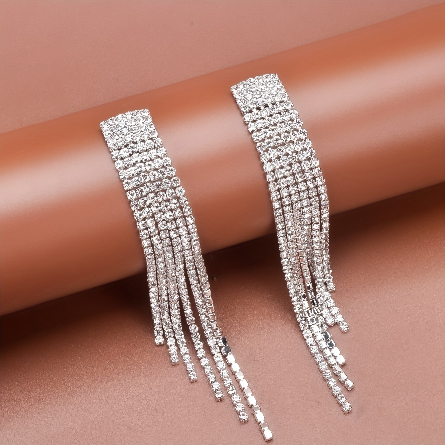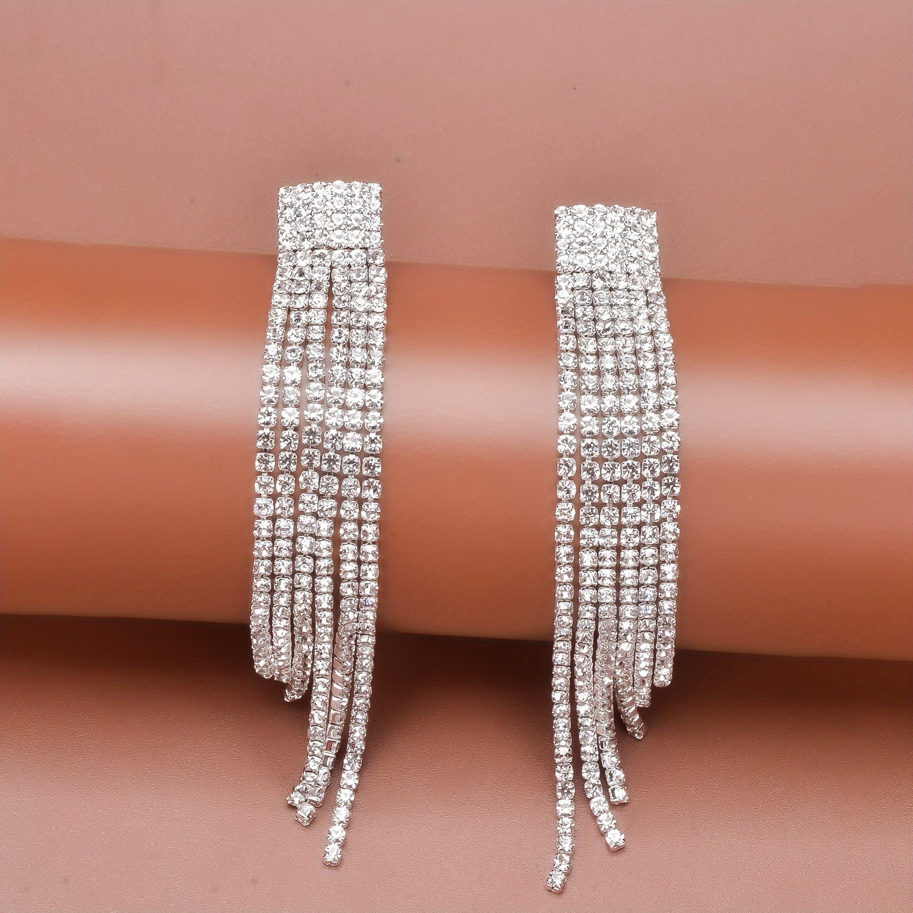 Sparkling Rhinestone Tassel Earrings Copper Silver Plated