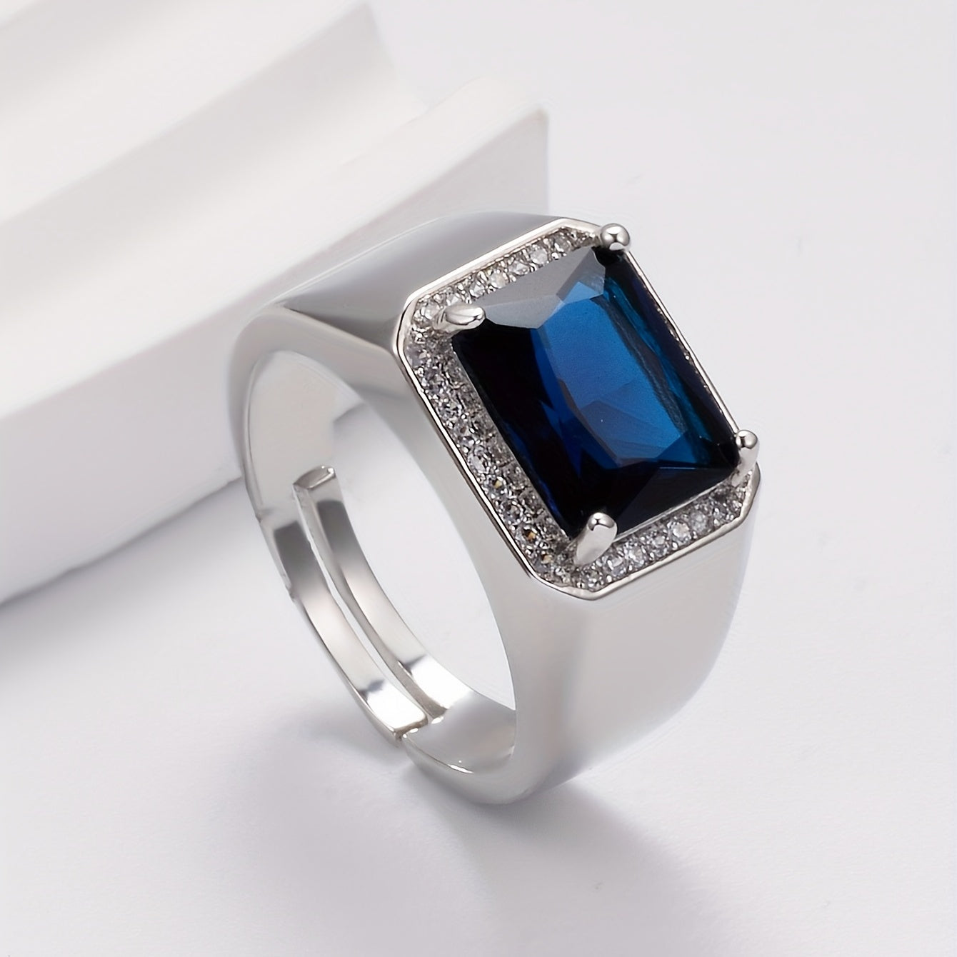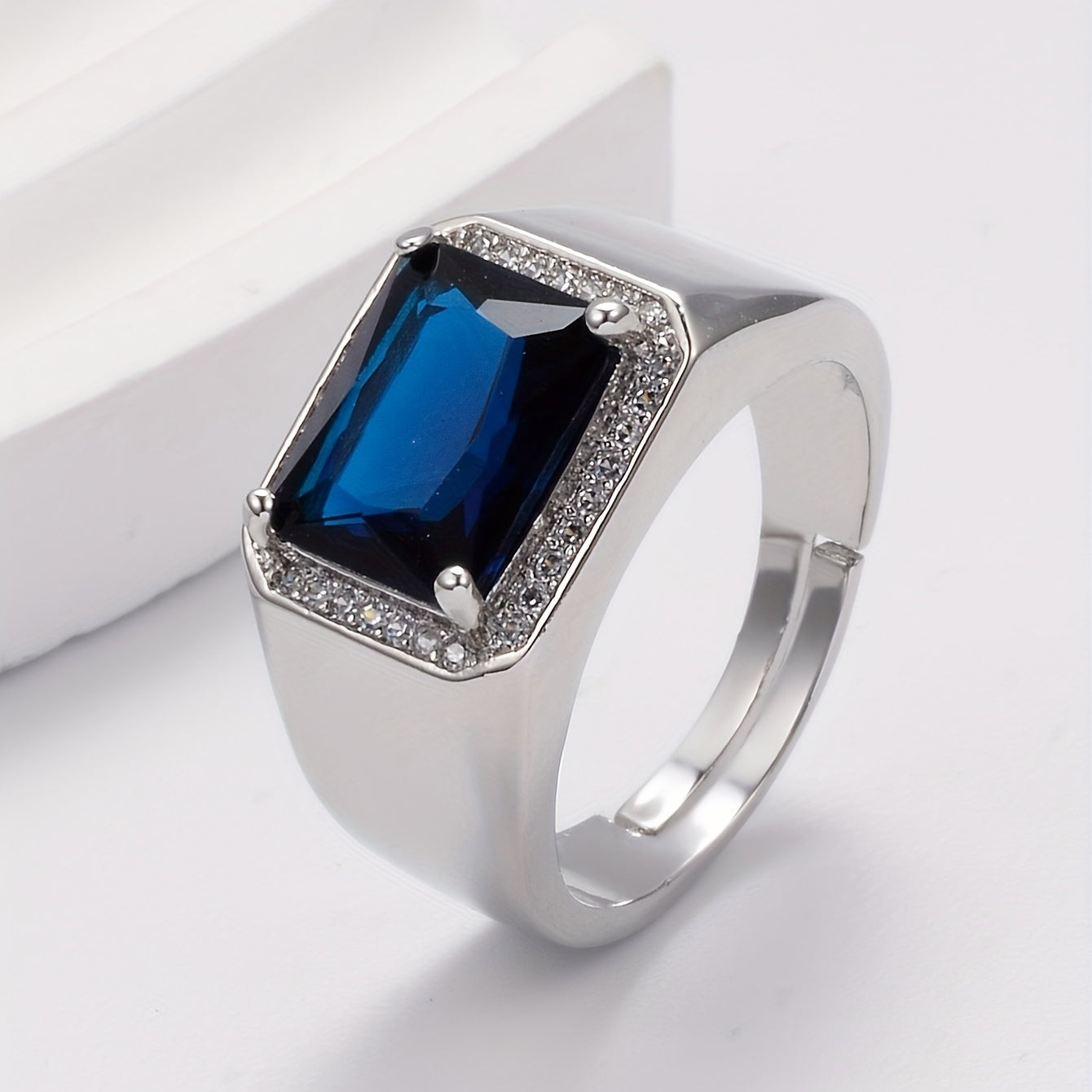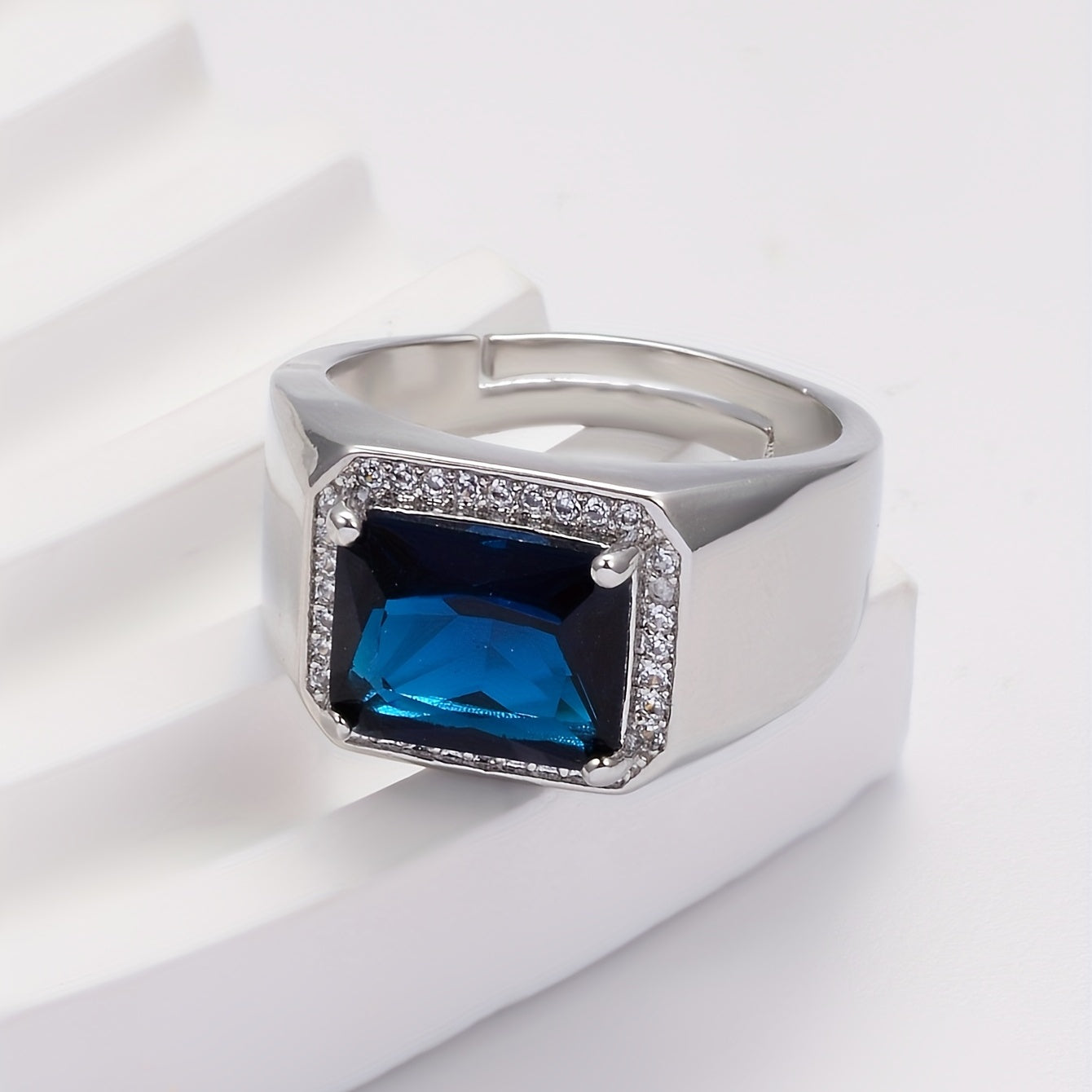 This wide ring features an inlaid square ocean zircon, ideal for both men and women. Adjustable sizing makes it a versatile accessory for parties and special occasions.