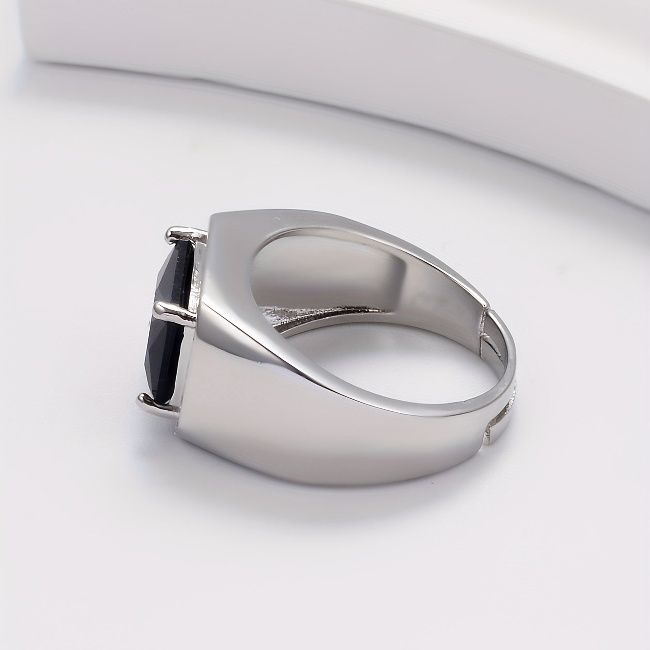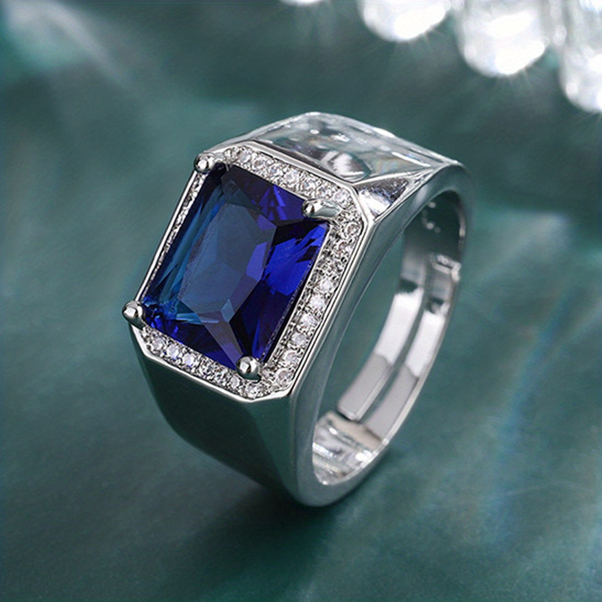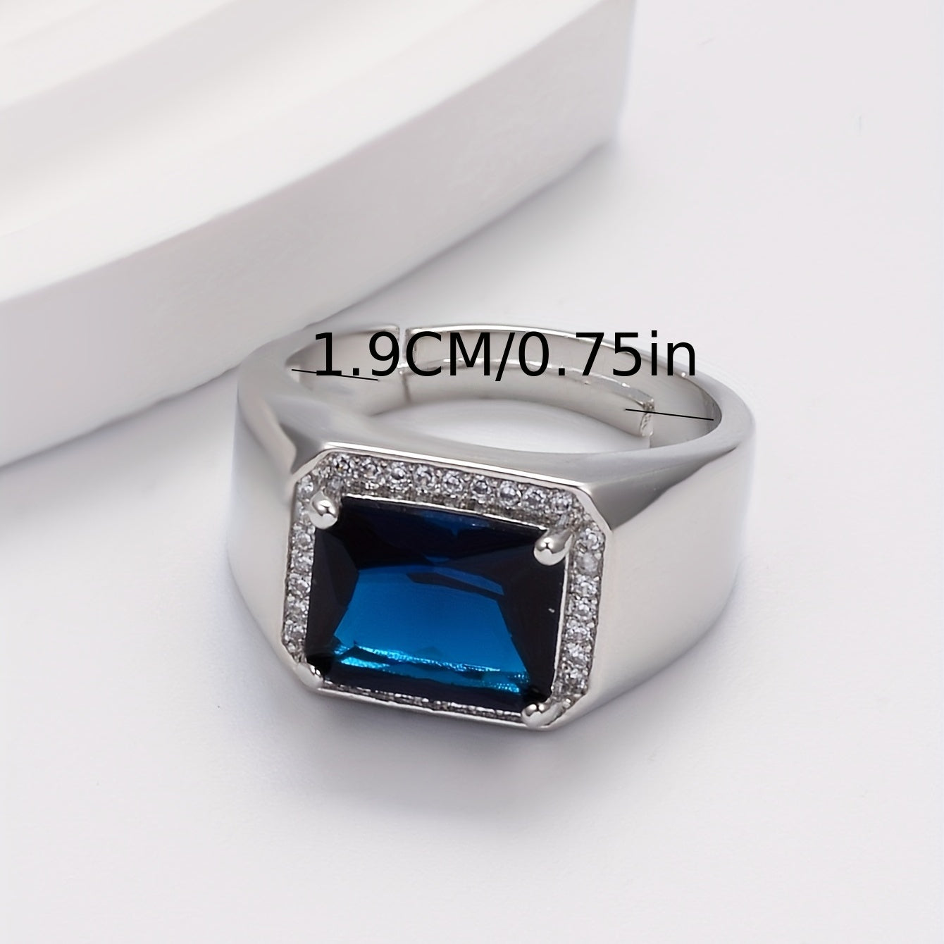 This wide ring features an inlaid square ocean zircon, ideal for both men and women. Adjustable sizing makes it a versatile accessory for parties and special occasions.