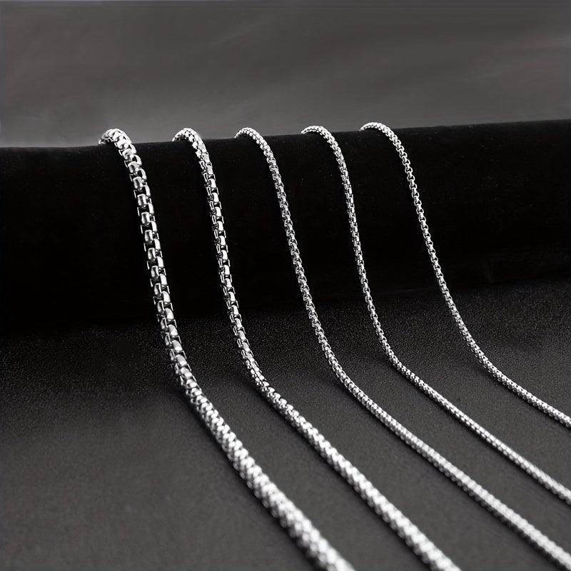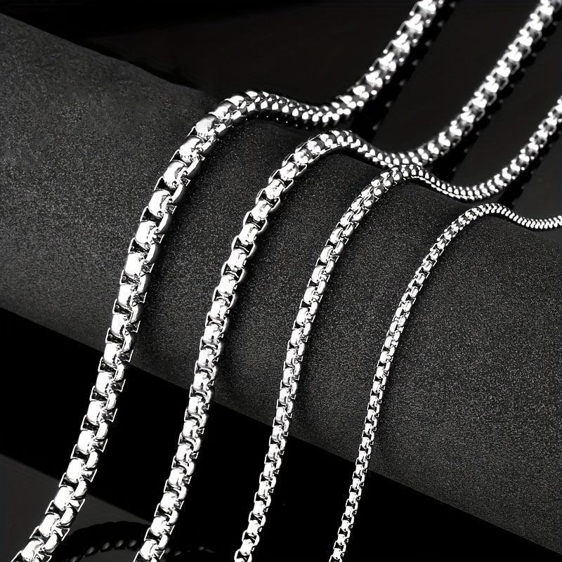 Square Pearl Necklace Stainless Steel Men Women Jewelry Accessory