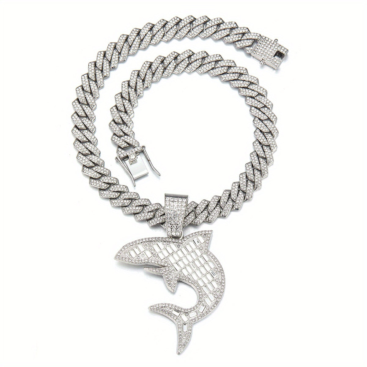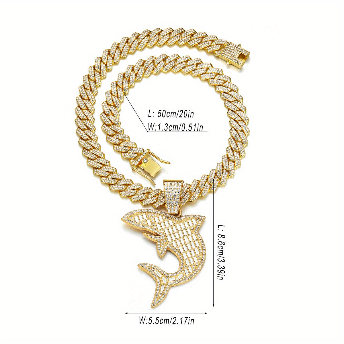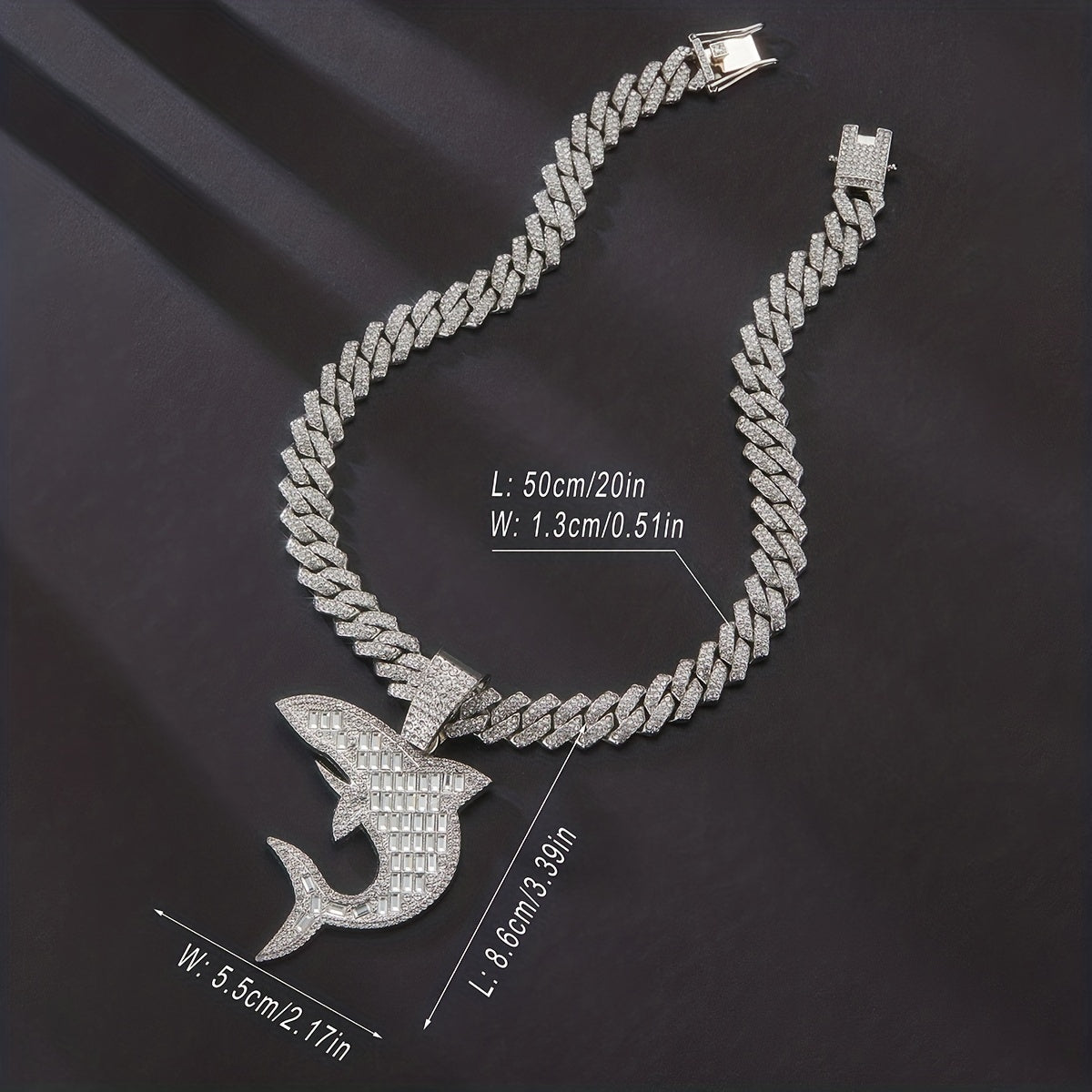 Unique rhinestone shark pendant with hip hop Cuban chain, perfect for men and women on Thanksgiving, Christmas, birthdays or as a gift for friends.
