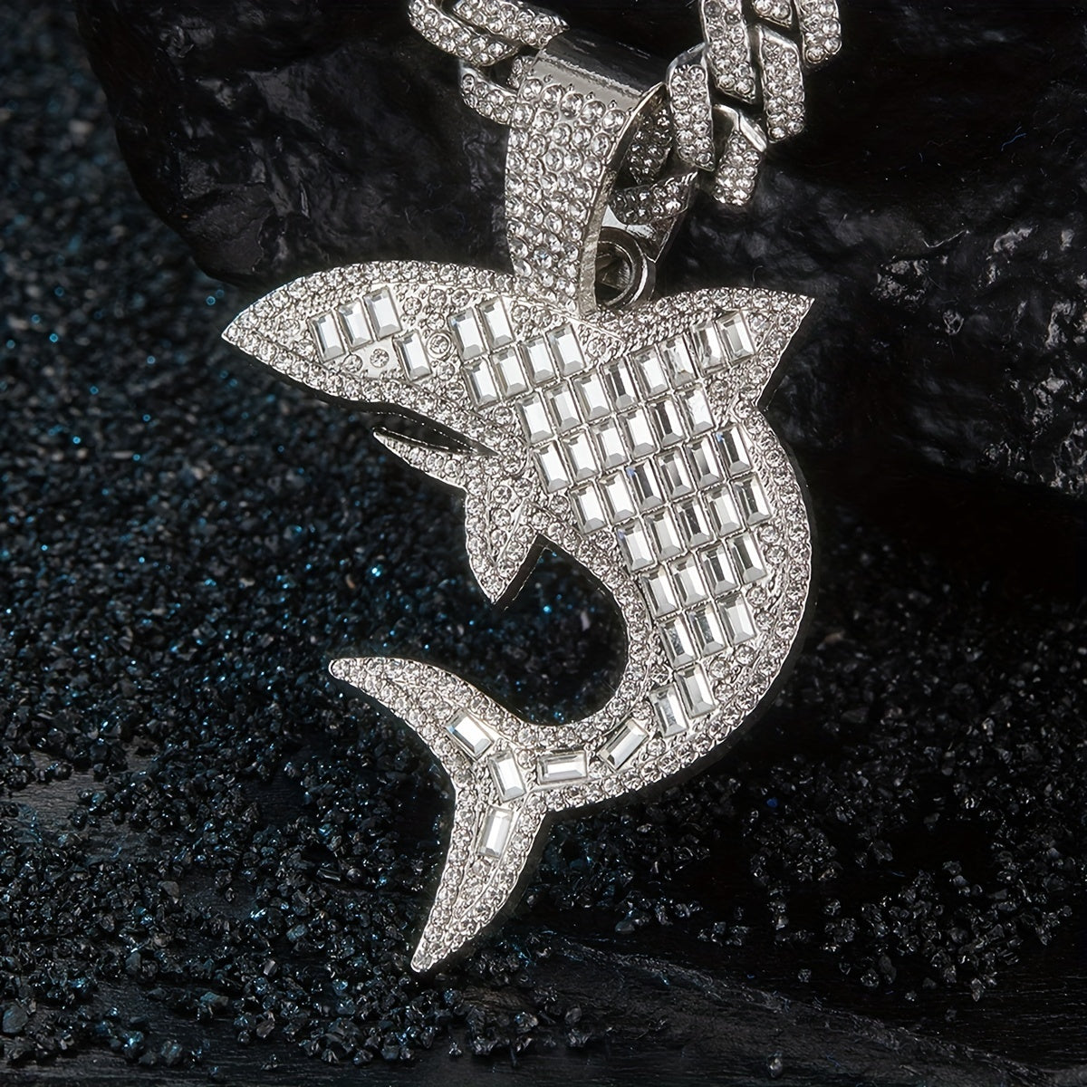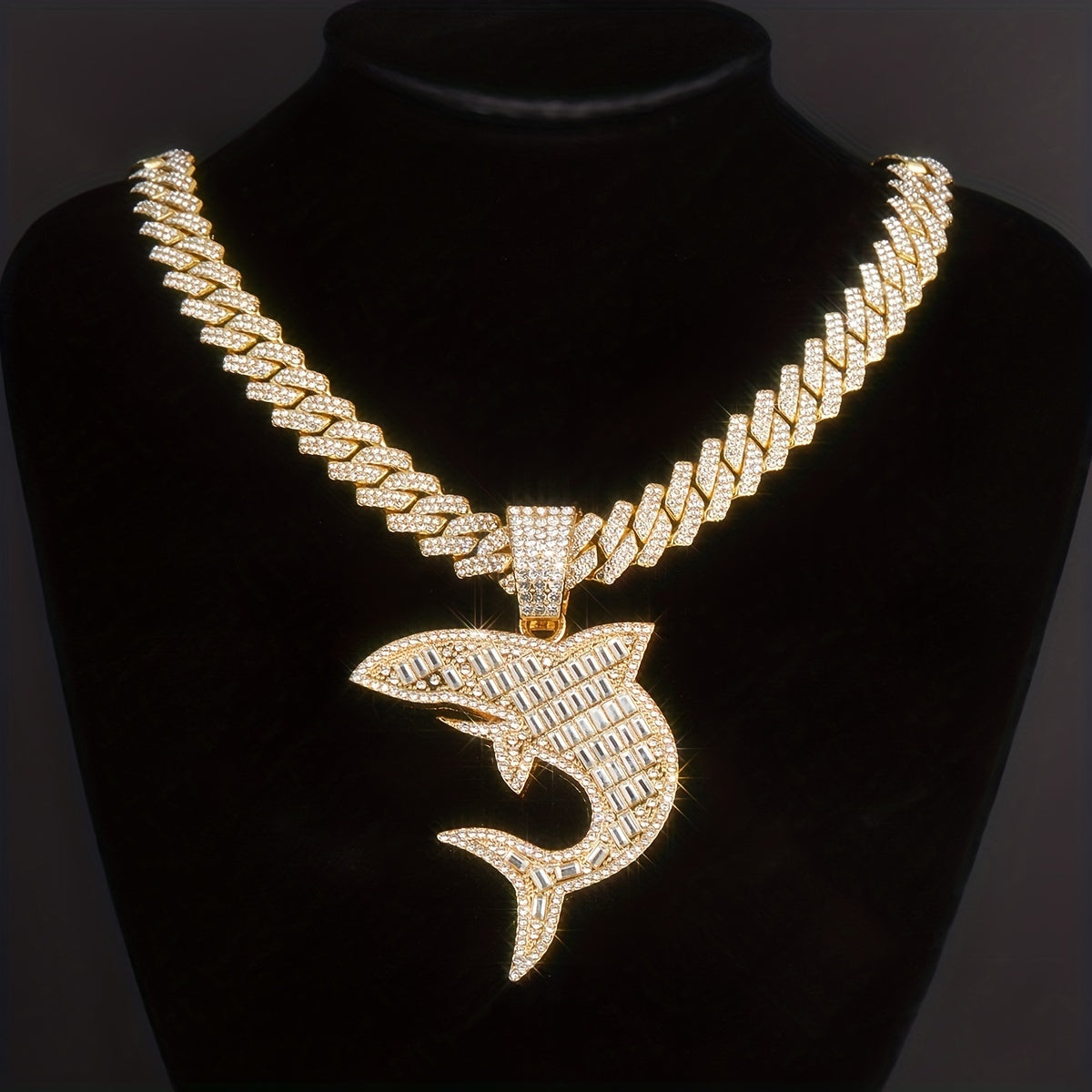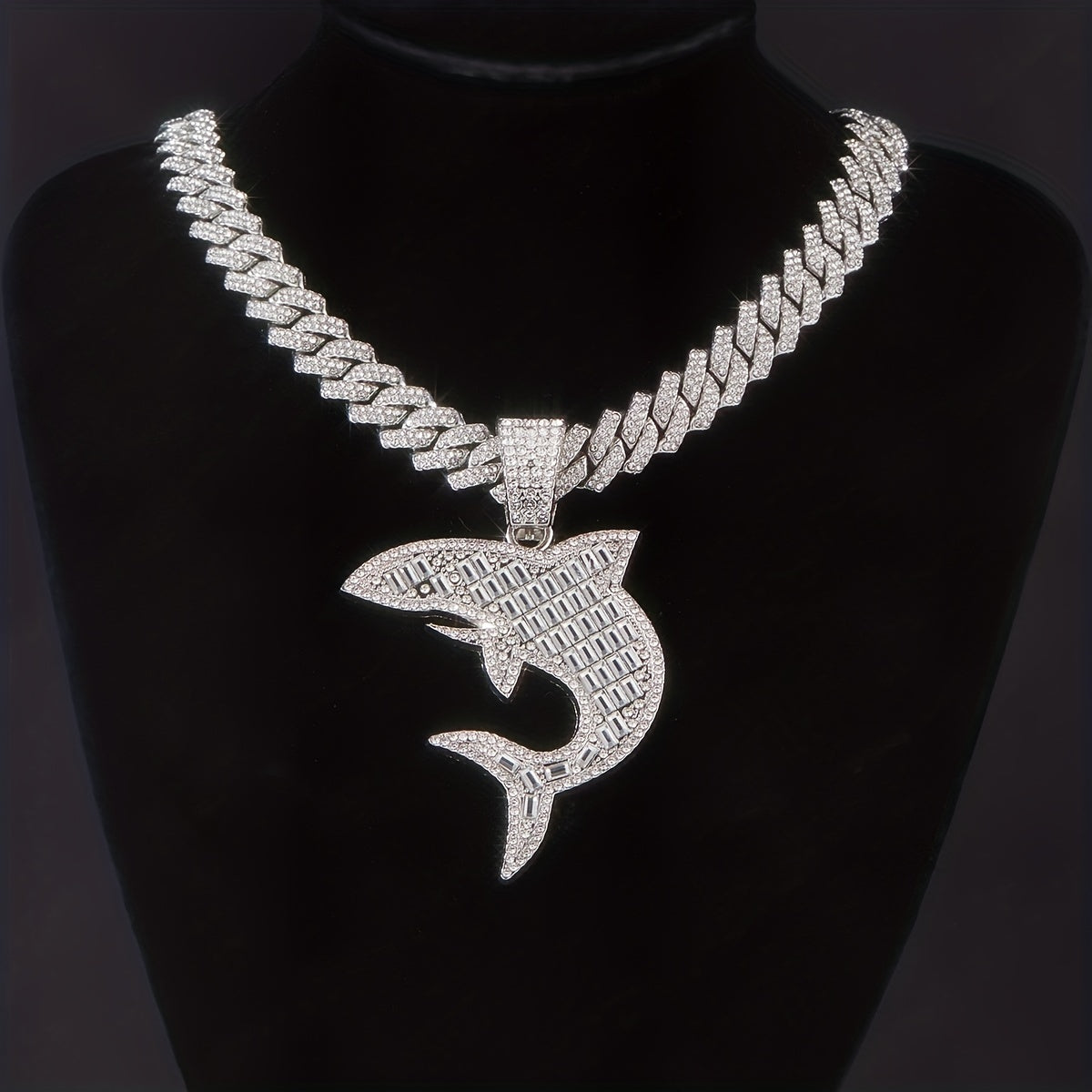 Unique rhinestone shark pendant with hip hop Cuban chain, perfect for men and women on Thanksgiving, Christmas, birthdays or as a gift for friends.