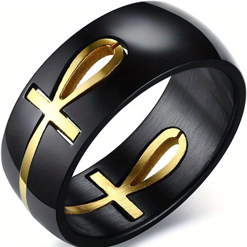 Stainless Steel 2 Tone Egyptian Ankh Cross Symbol Rings For Men Boys