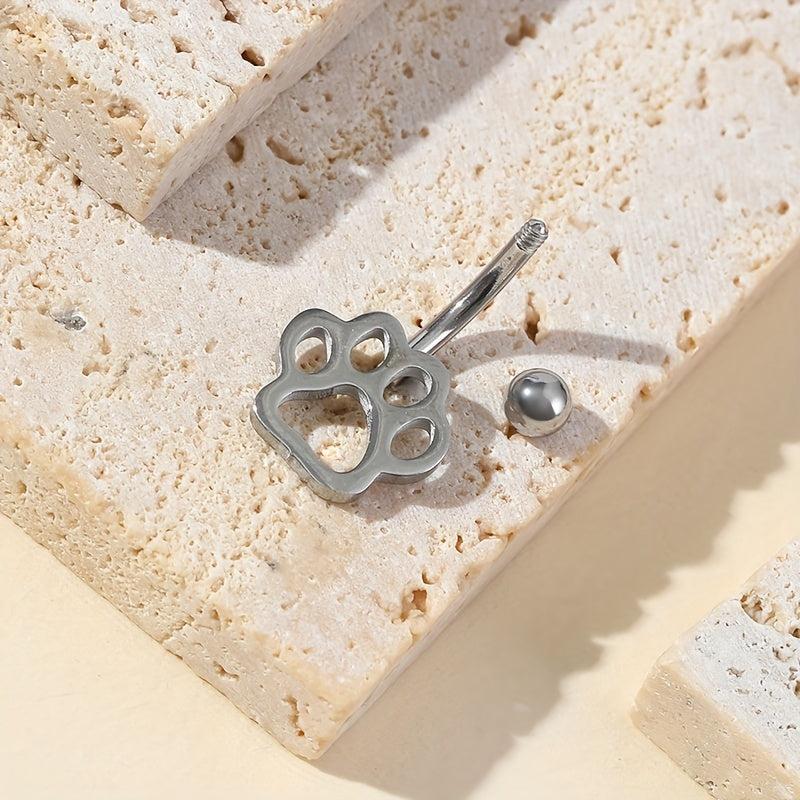 Enhance your style with this unique stainless steel bear paw navel nail. Perfect for men, this silvery piercing jewelry adds a touch of personality to your look.