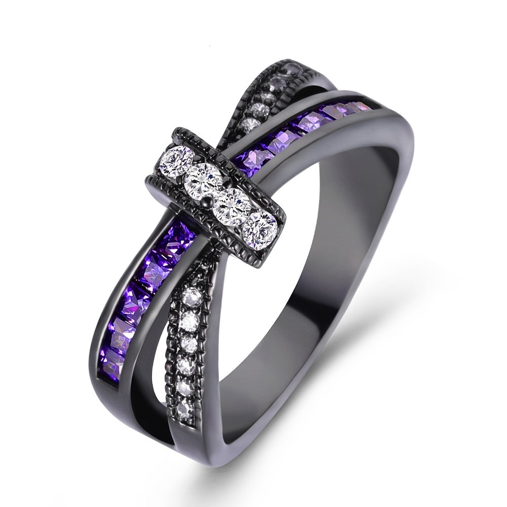 This stainless steel ring features a beautiful butterfly design with a purple zircon stone. Perfect for couples, men, or women.