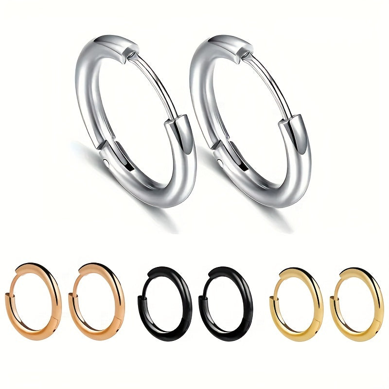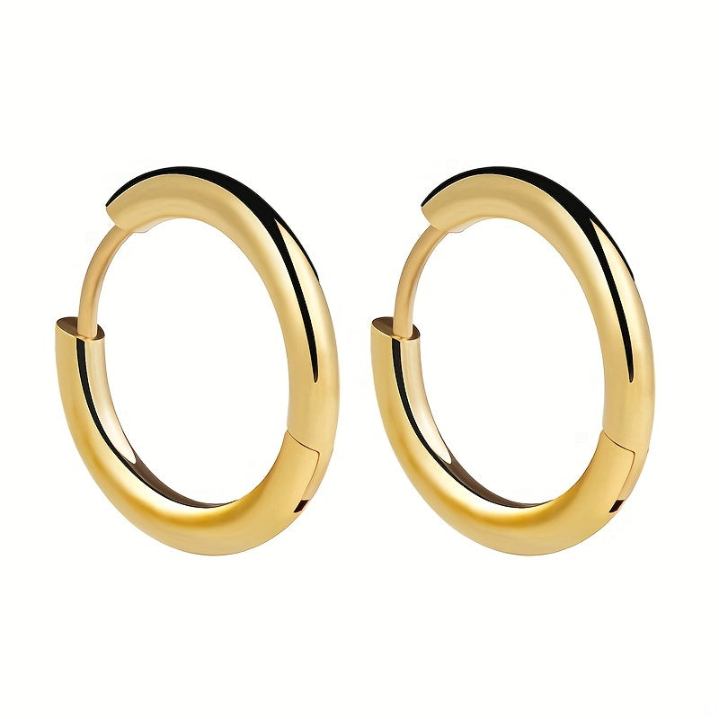 These minimalist golden earrings are made of round titanium steel coil, featuring a pair of stainless steel ear clip earrings for a stylish look.