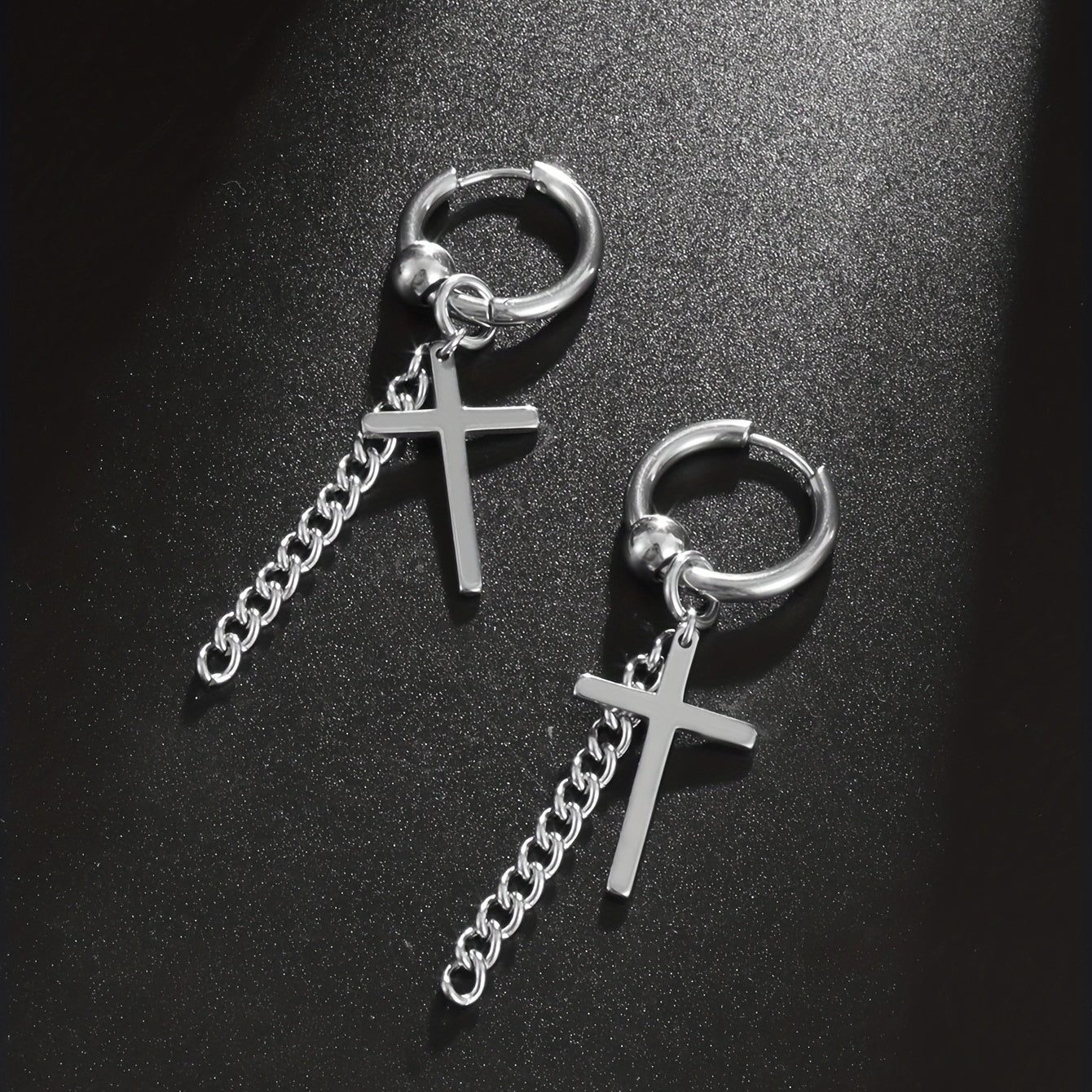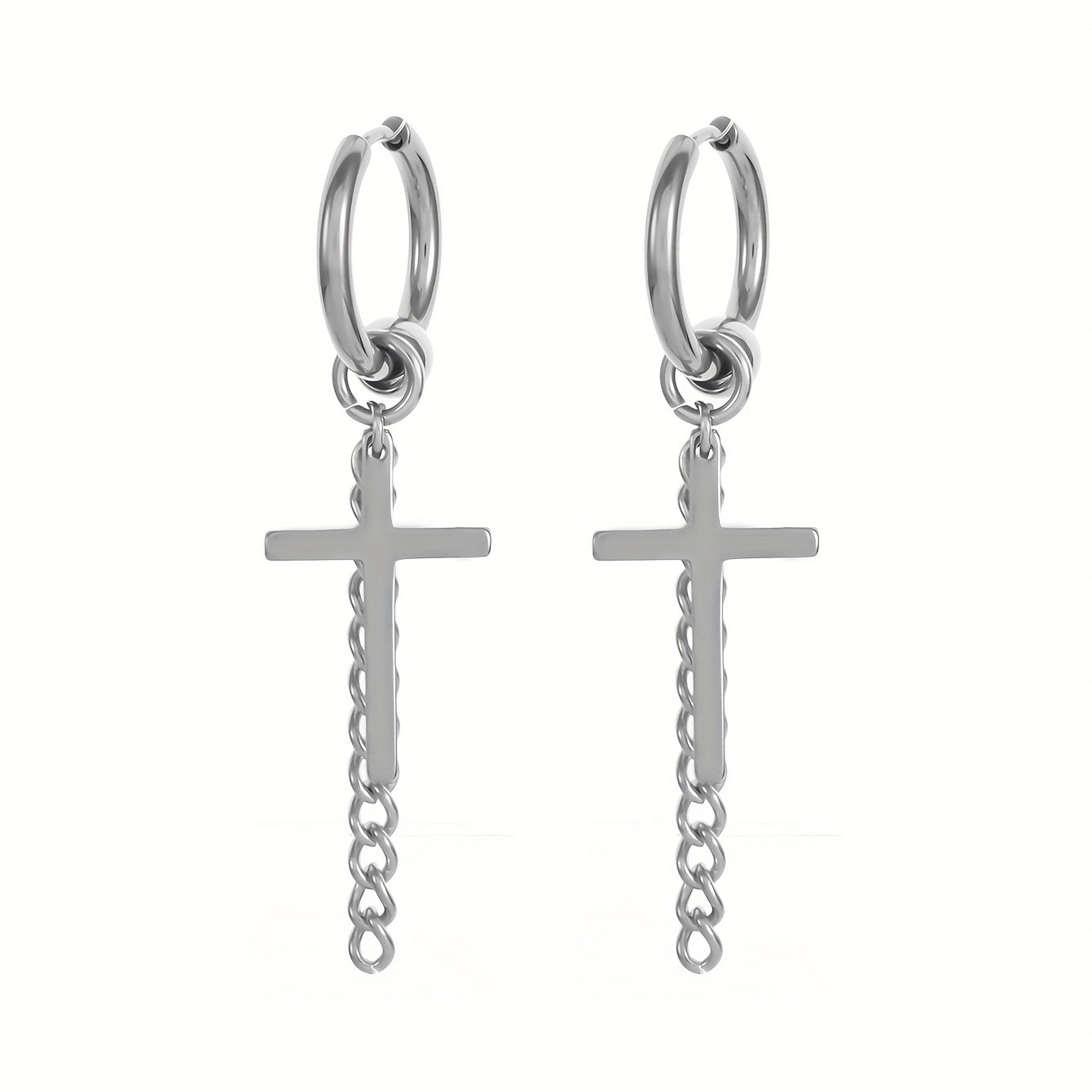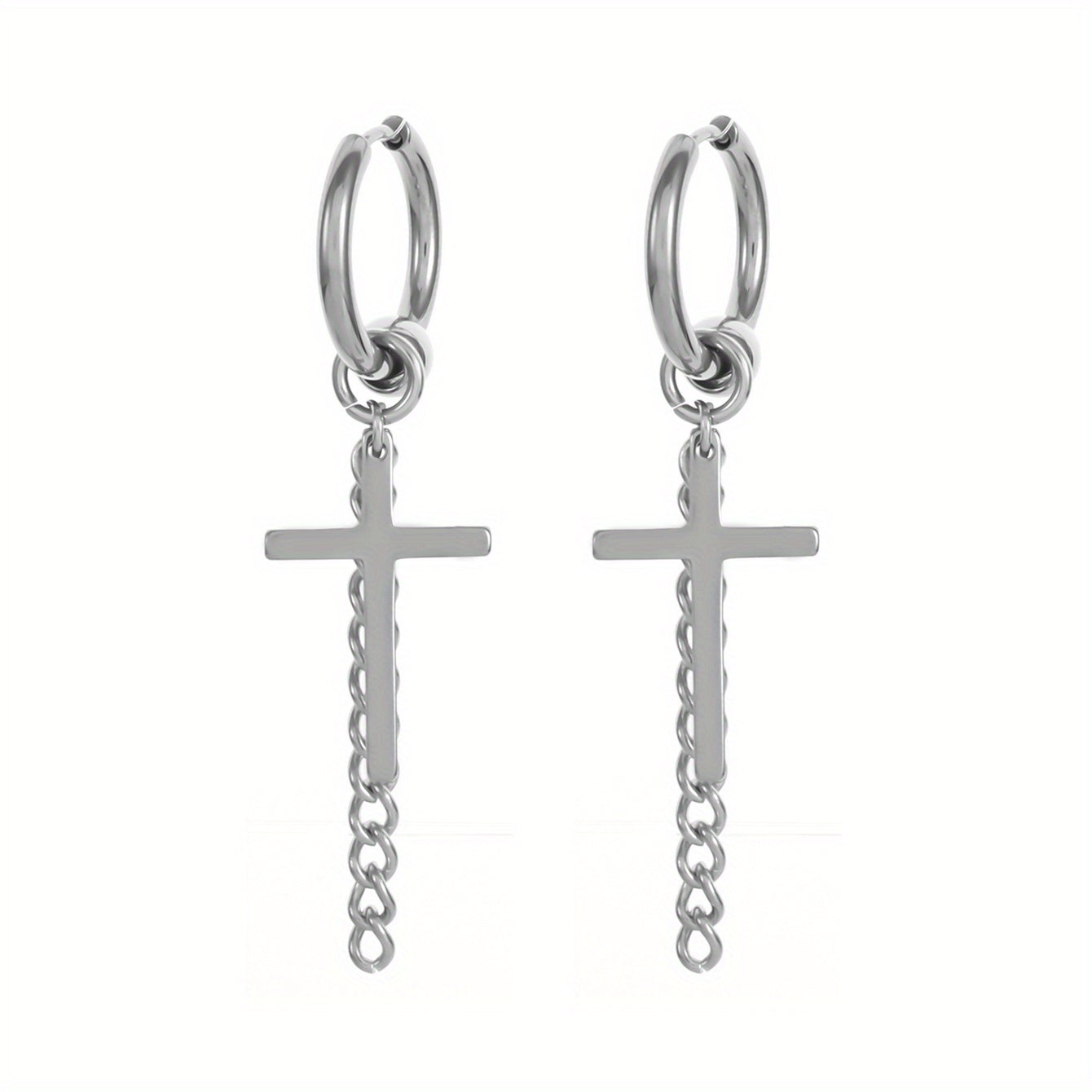 These stainless steel cross dangle earrings are perfect for men who want to add a touch of punk style to their outfit. Great for street parties and everyday wear.