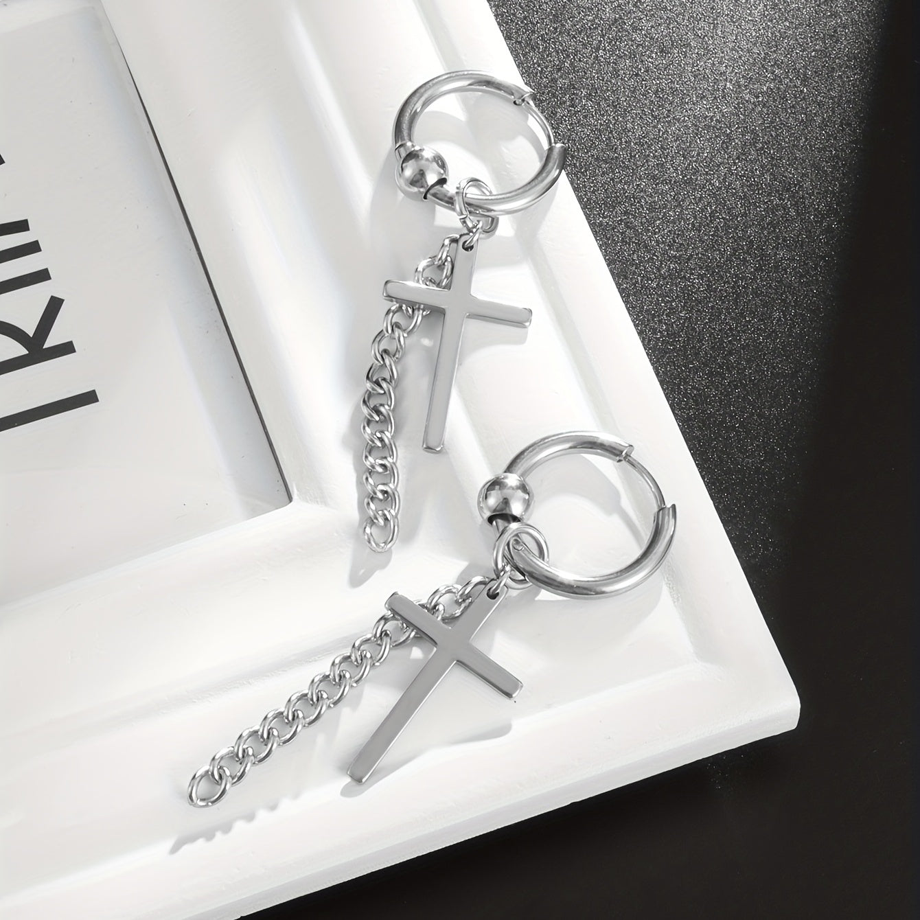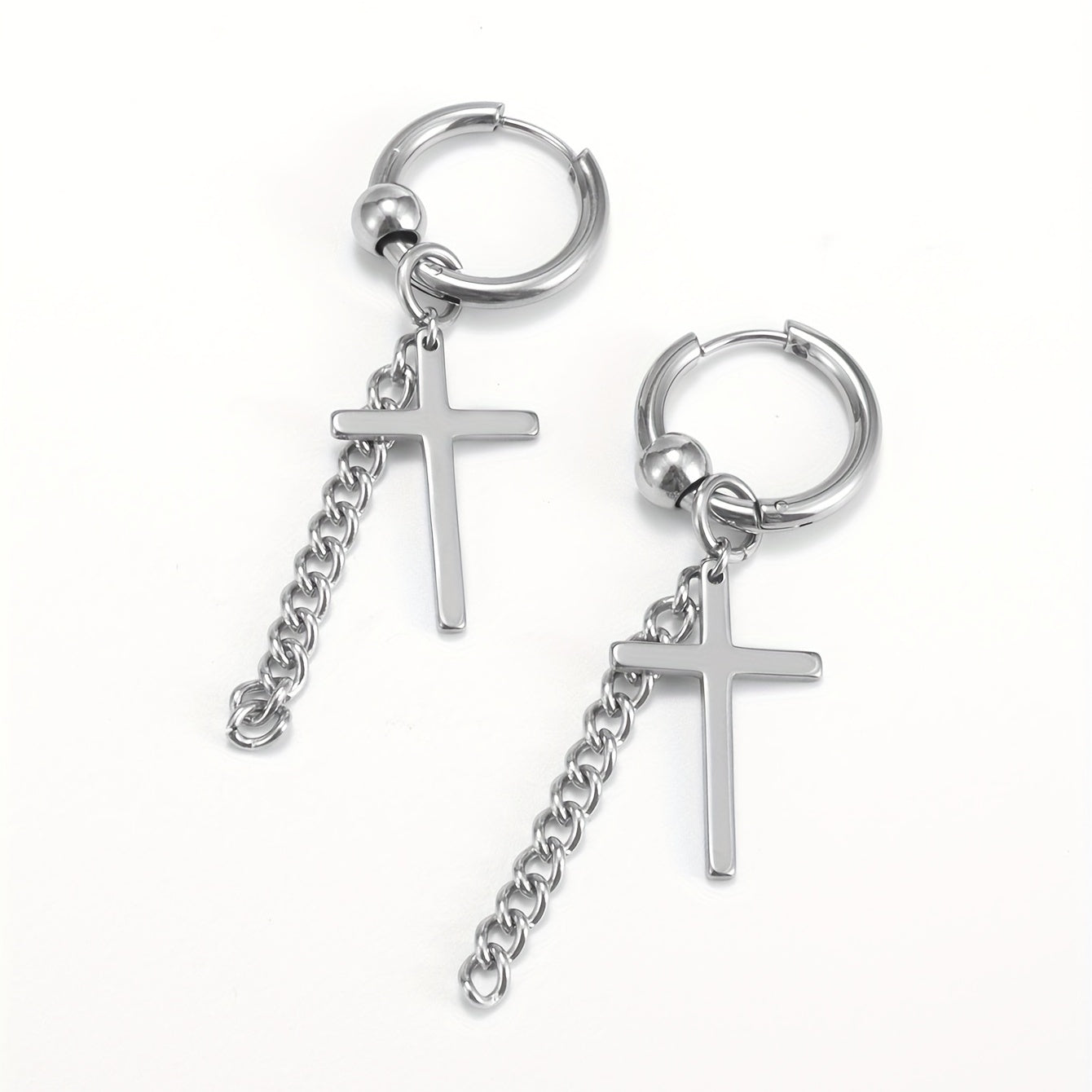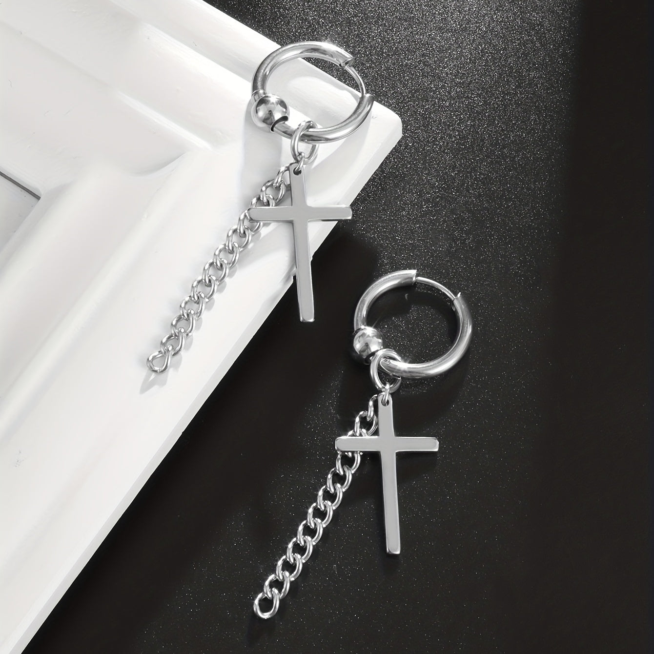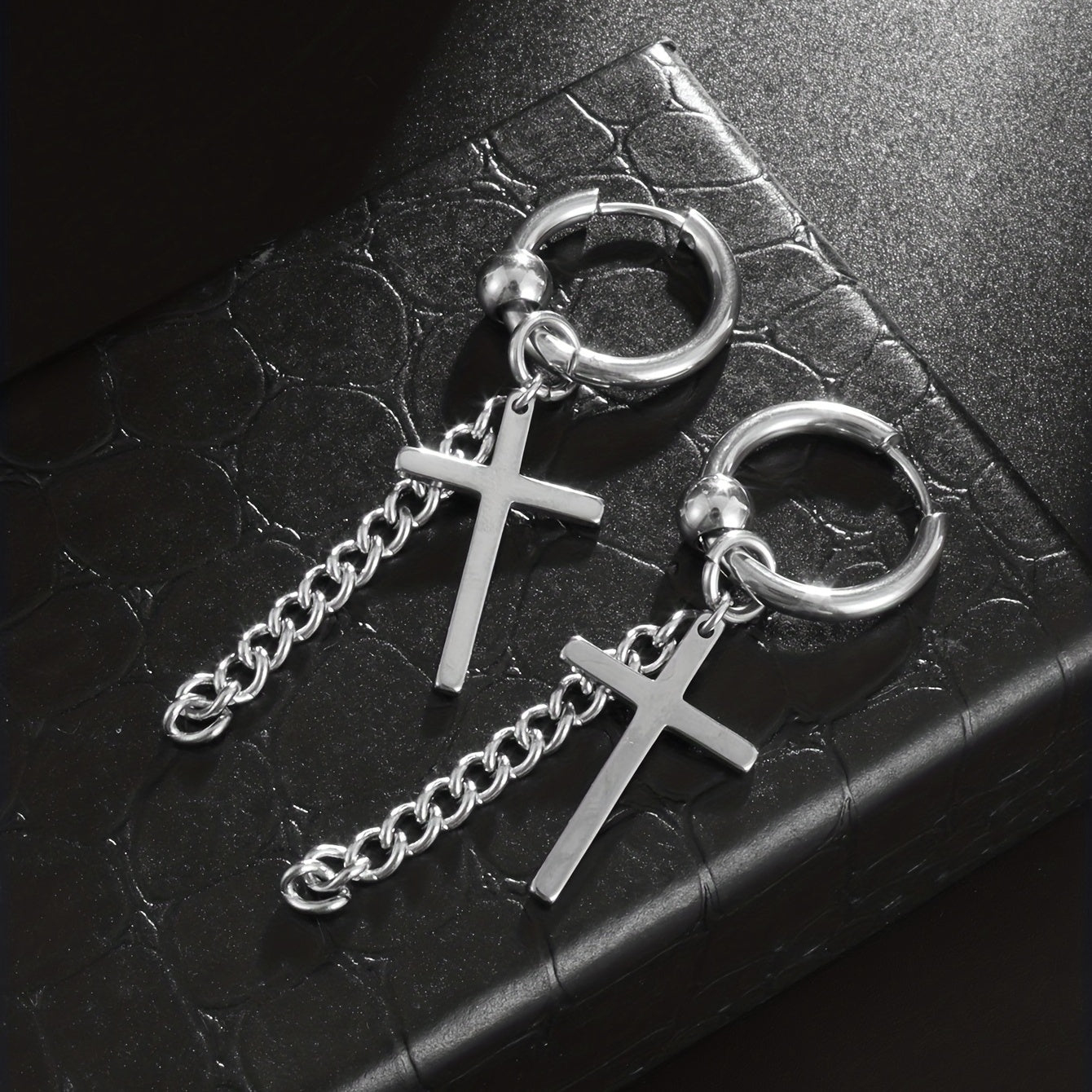 These stainless steel cross dangle earrings are perfect for men who want to add a touch of punk style to their outfit. Great for street parties and everyday wear.