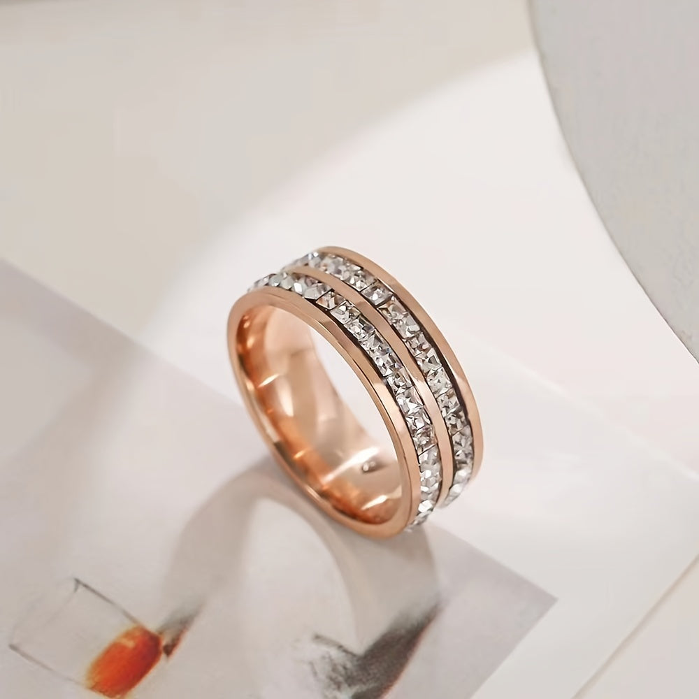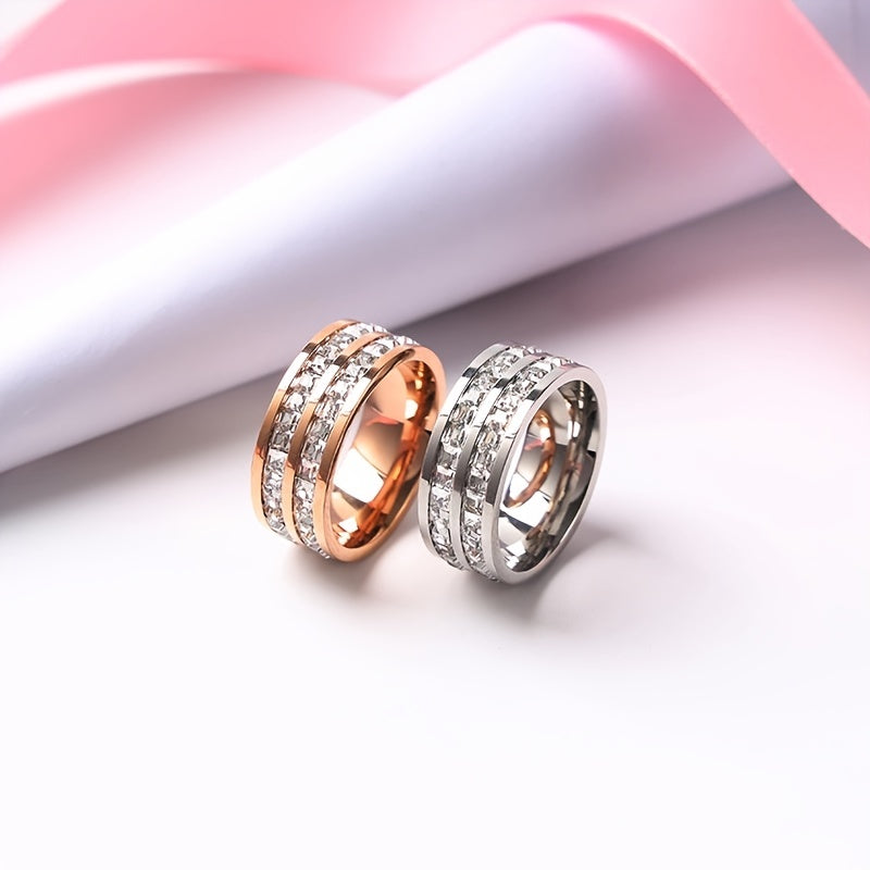 This stylish couple ring features small square rhinestone and a full star design. It is made of high-quality stainless steel with a double row full drill titanium steel construction, delivering a unique and personalized look.