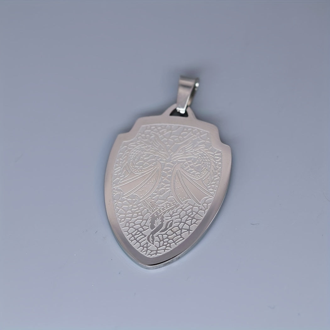 A bold and striking stainless steel pendant featuring two interlocked dragon designs, perfect for men who embrace their inner warriors. This necklace exudes a punk, Viking mythology vibe, making it a unique amulet gift accessory.