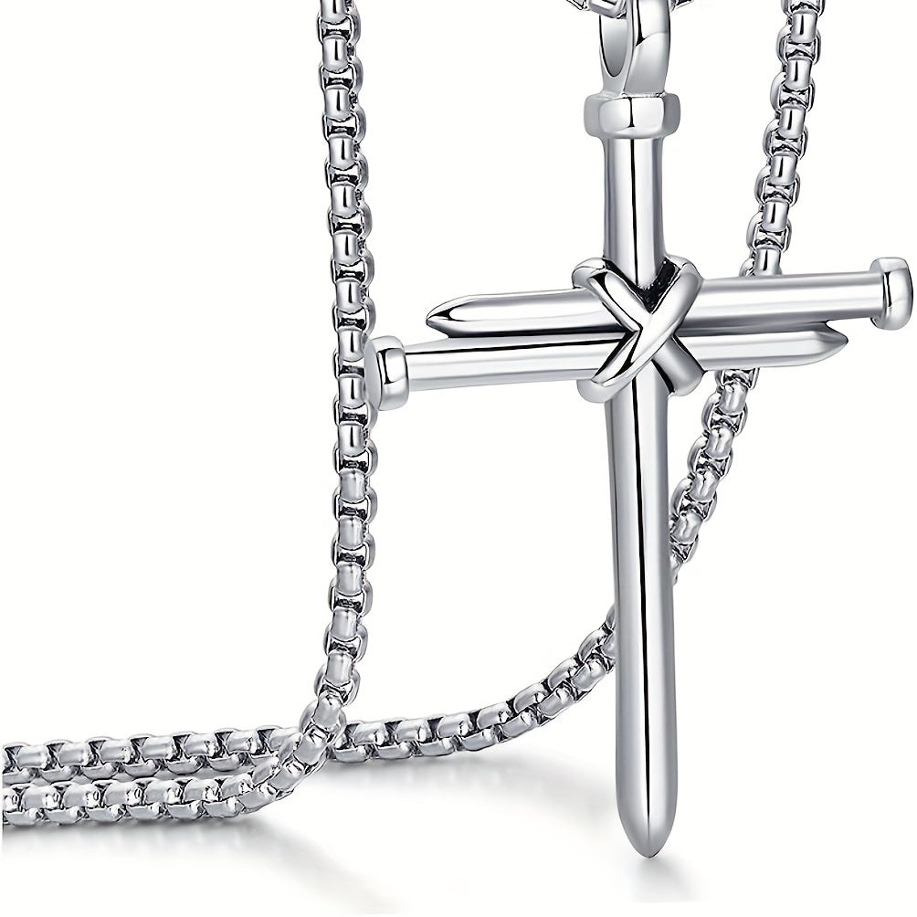 This trendy and stylish cross chain necklace is made of stainless steel, featuring a funky nail design. Perfect for men and women who love hip hop style. Great for adding an edgy touch to any outfit. Ideal for holiday, birthday, party, or as a gift.