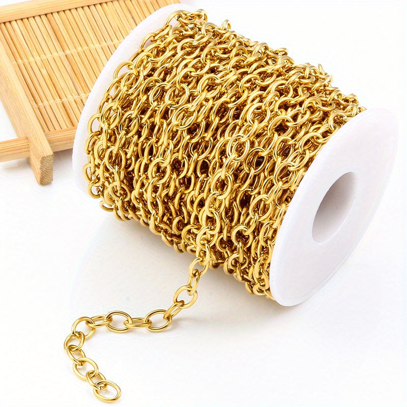 Add a touch of personality with this hip hop style stainless steel golden oval chain. Perfect for creating your own unique accessories.