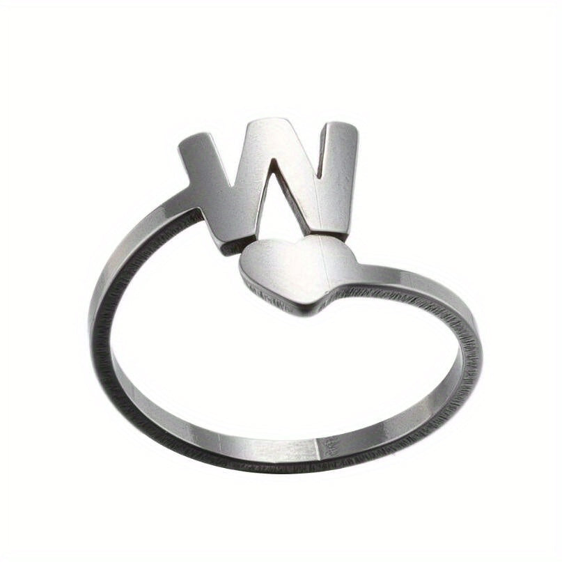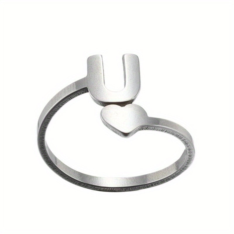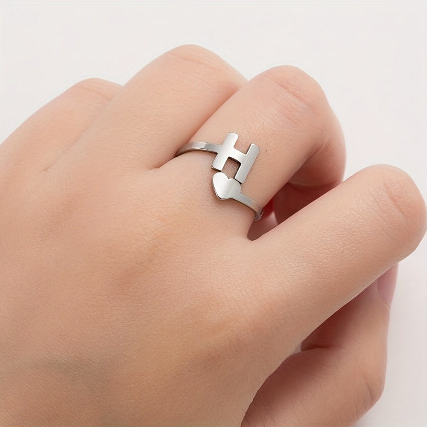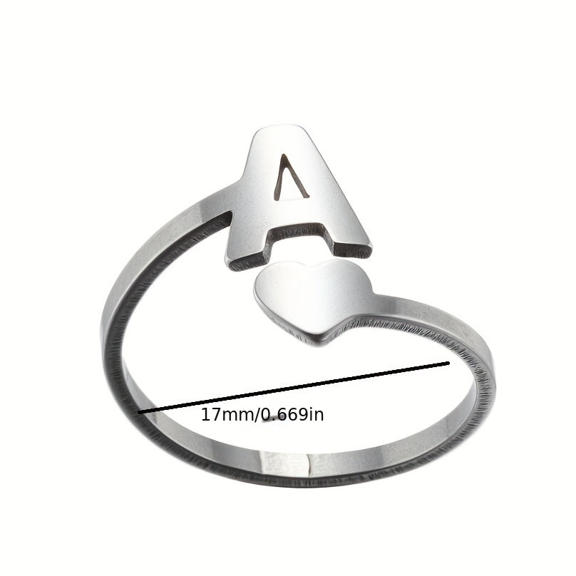 This stainless steel initial ring is a perfect accessory for men. It features a tiny heart and is adjustable to fit various finger sizes.