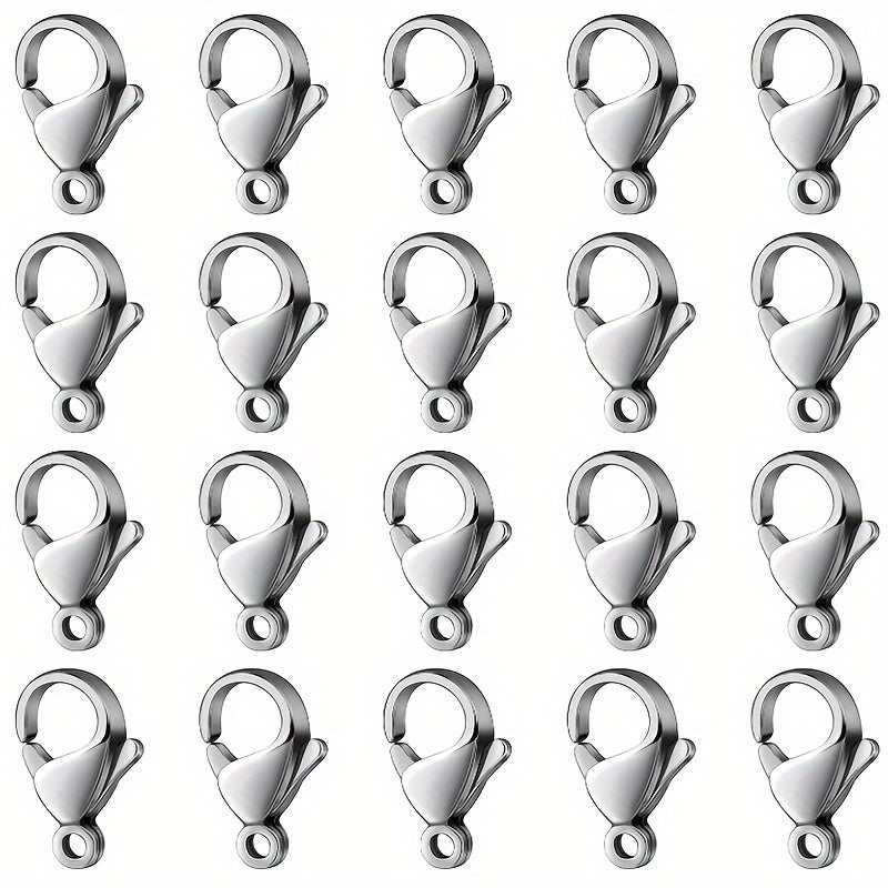Get 20 pieces of silvery lobster claw clasps made of stainless steel for creating necklaces, bracelets, and earrings. Perfect for DIY jewelry projects.
