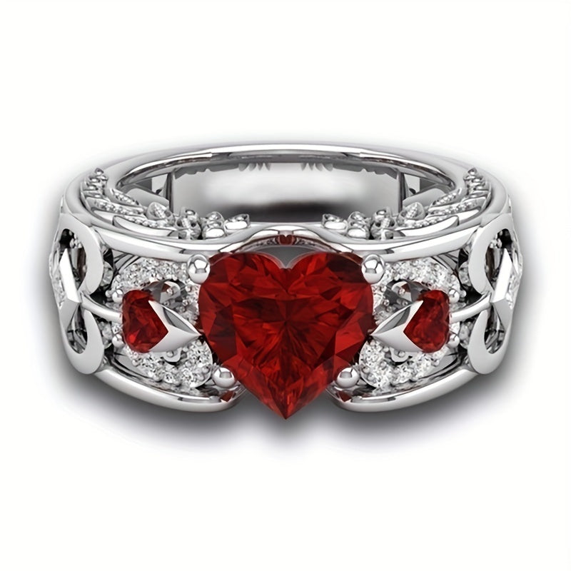 This stylish ring features a heart shape design with a faux ruby, making it a perfect accessory for men.