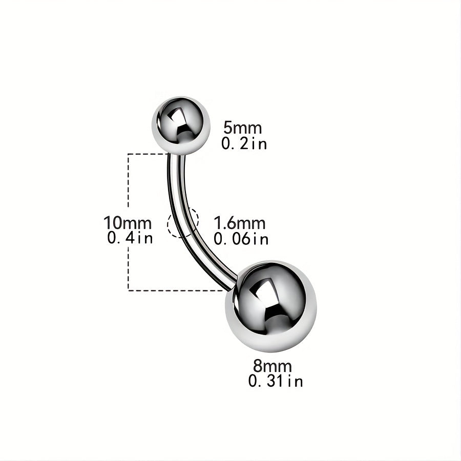 This set includes 4 pieces of stainless steel navel rings with round ball designs. They are 14 gauge in thickness and are perfect for adding a stylish touch to your belly button piercing.