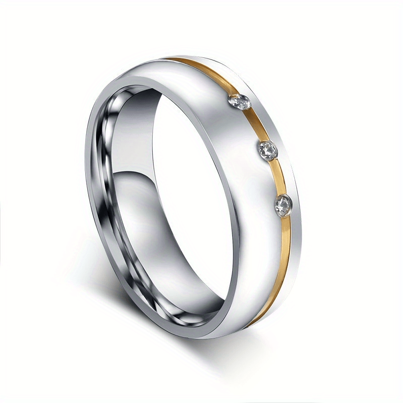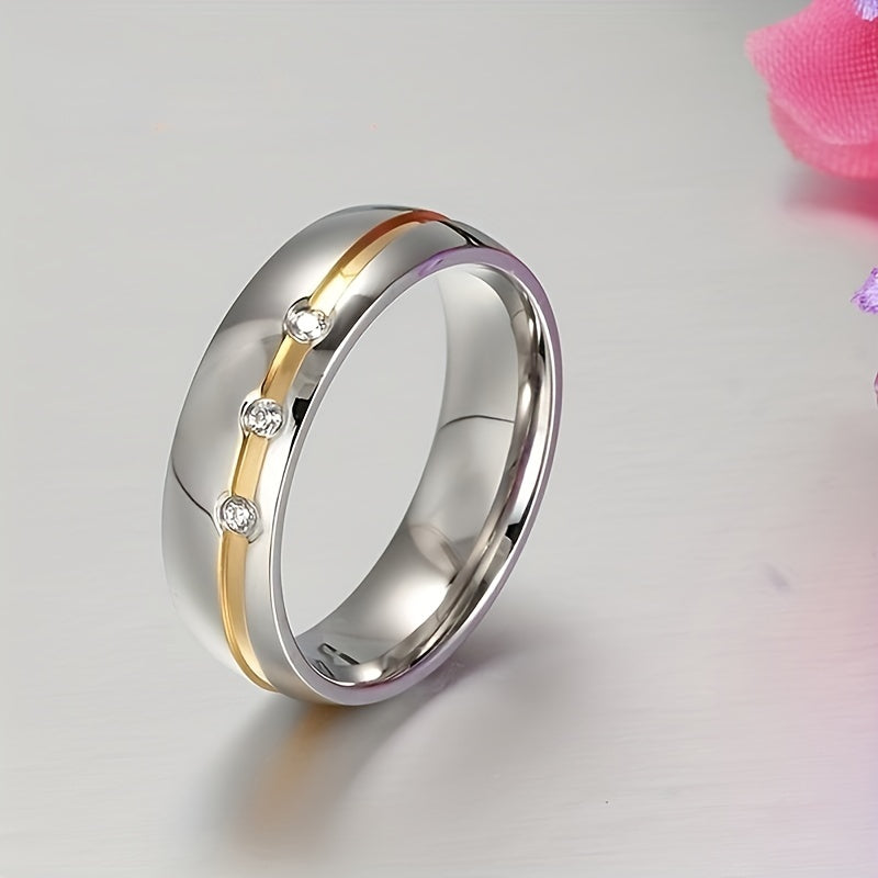 This fashionable stainless steel ring with a charming rhinestone inlay is a unique and ideal choice for a promise ring or a surprise gift for both men and women.