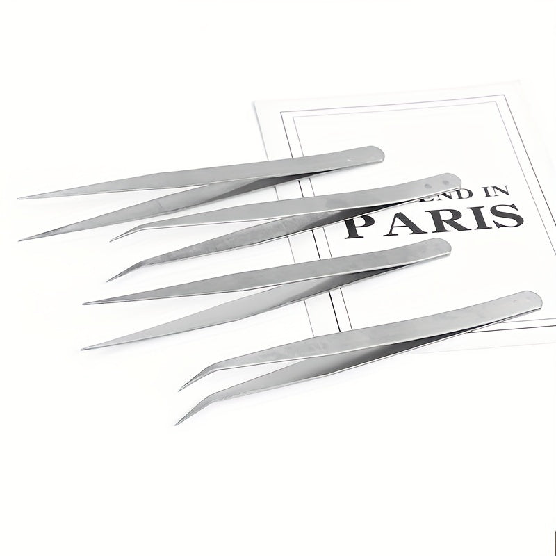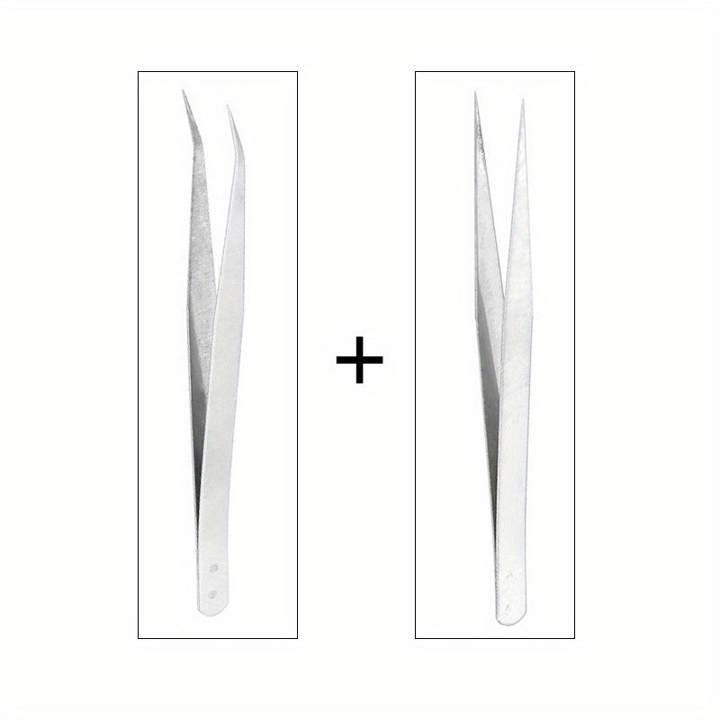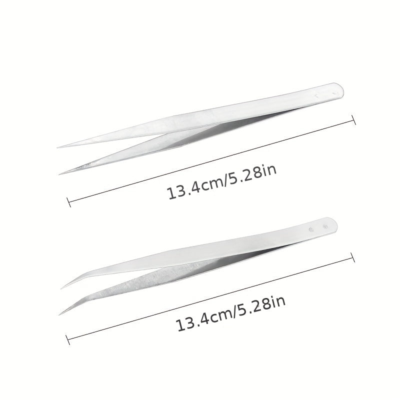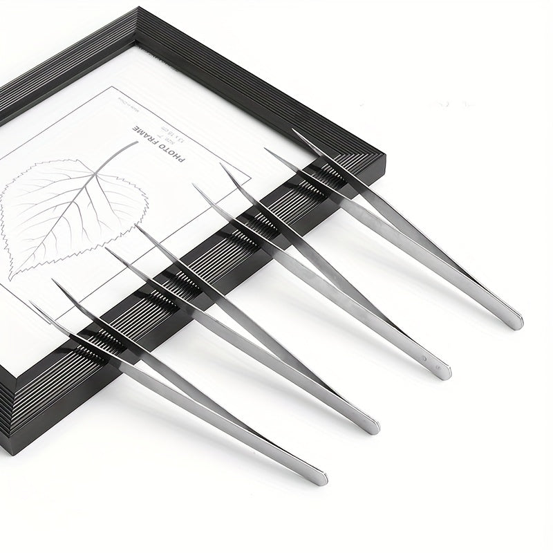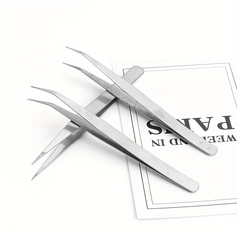 High-quality stainless steel tweezers designed for various tasks including laboratory work, jewelry making, and crafts. The tweezers feature a silvery finish and an elbow design for precise handling.