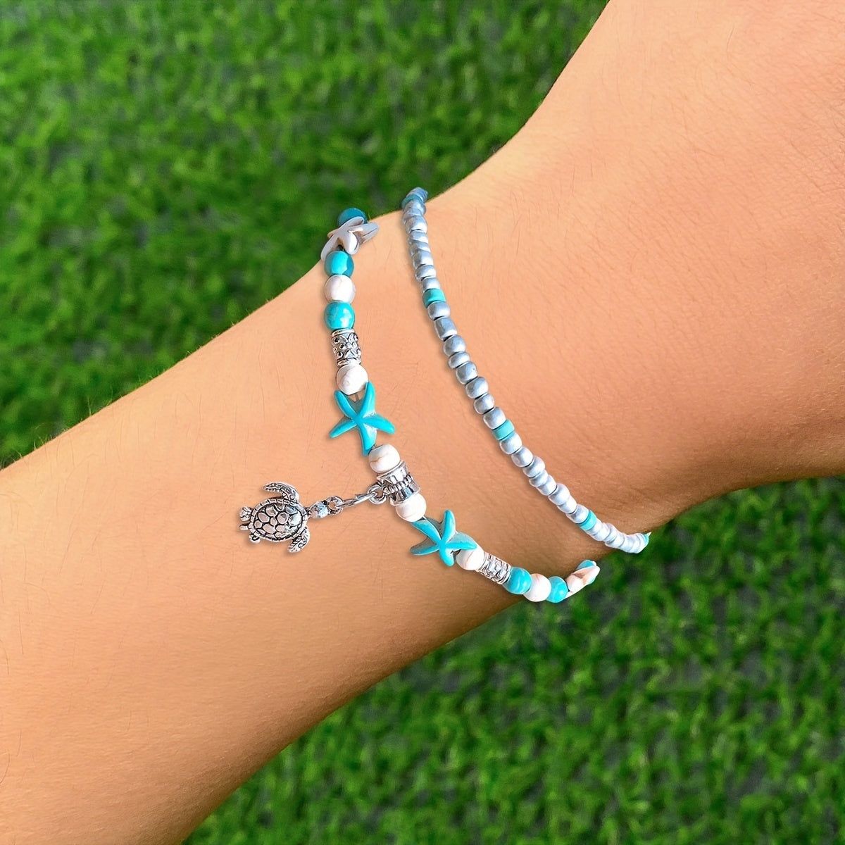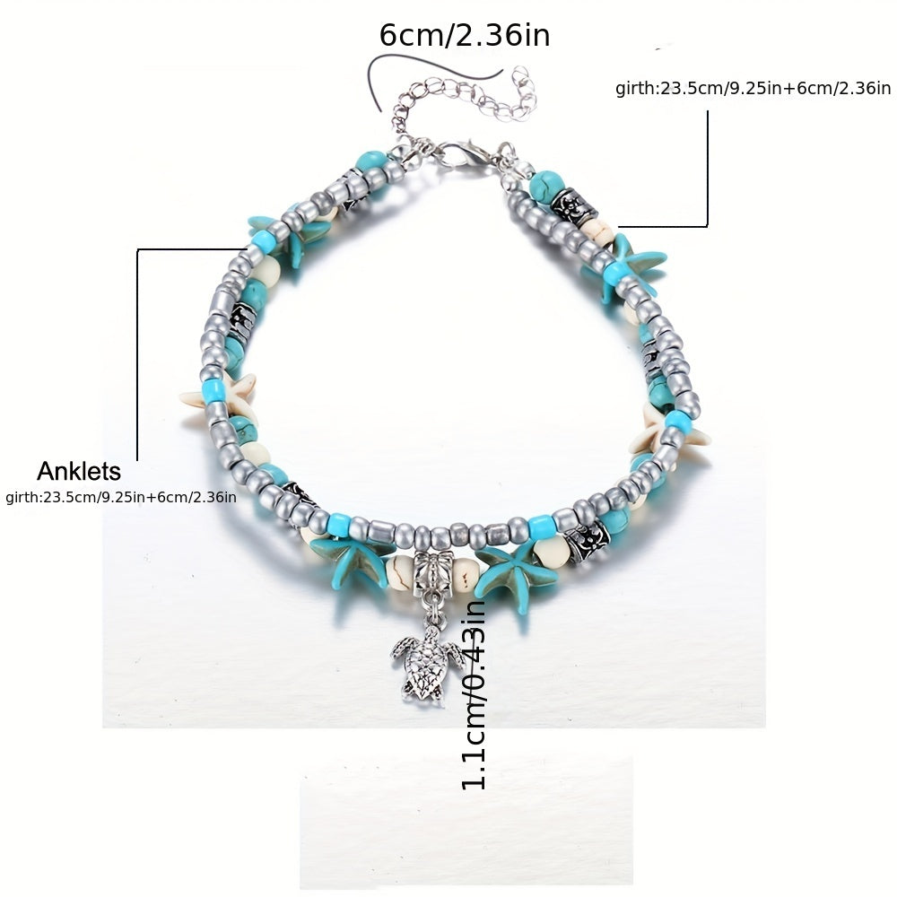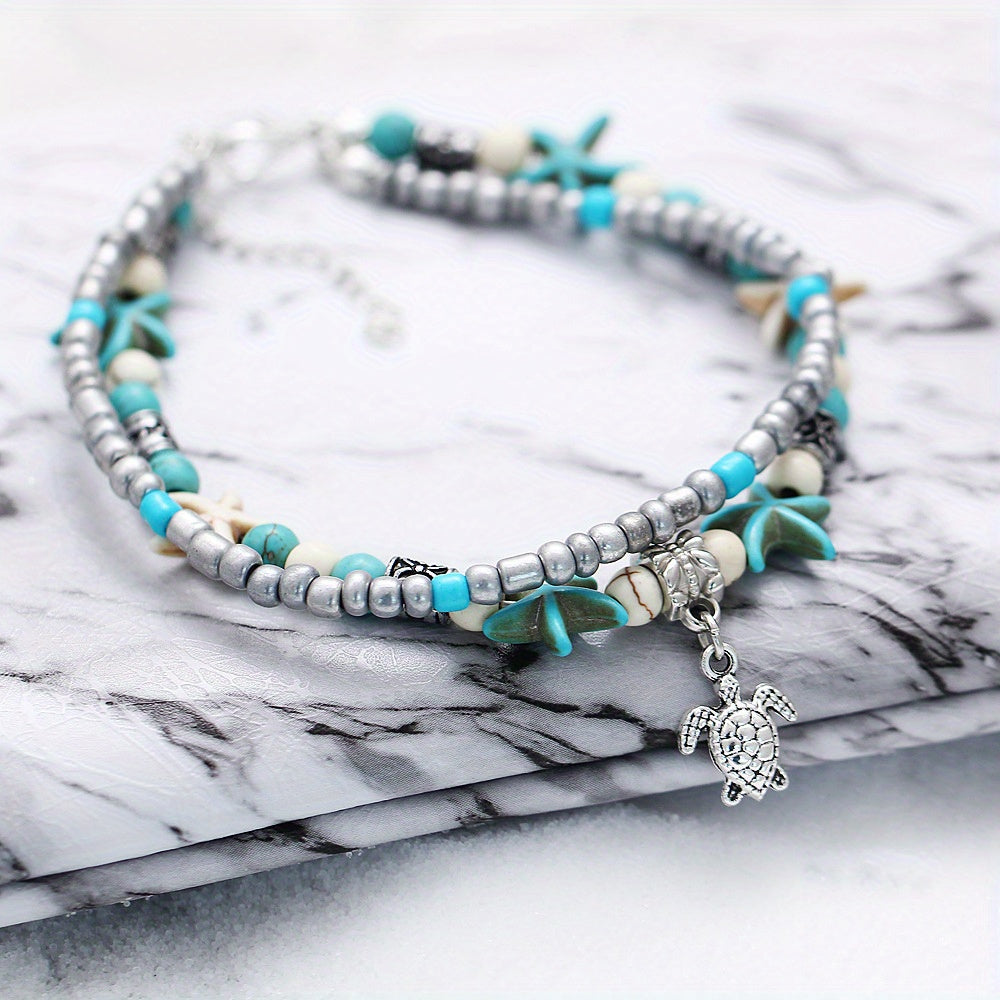 Adorn your wrist with this charming ocean-inspired bracelet featuring starfish, sea turtle, and elephant charms. A perfect gift for women and girls.
