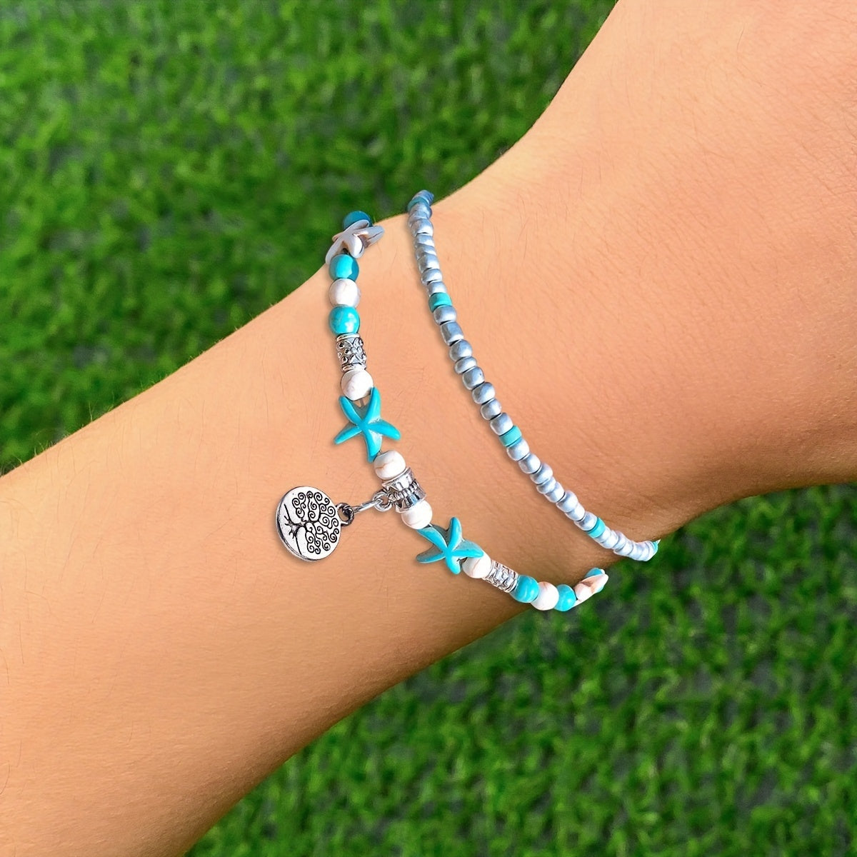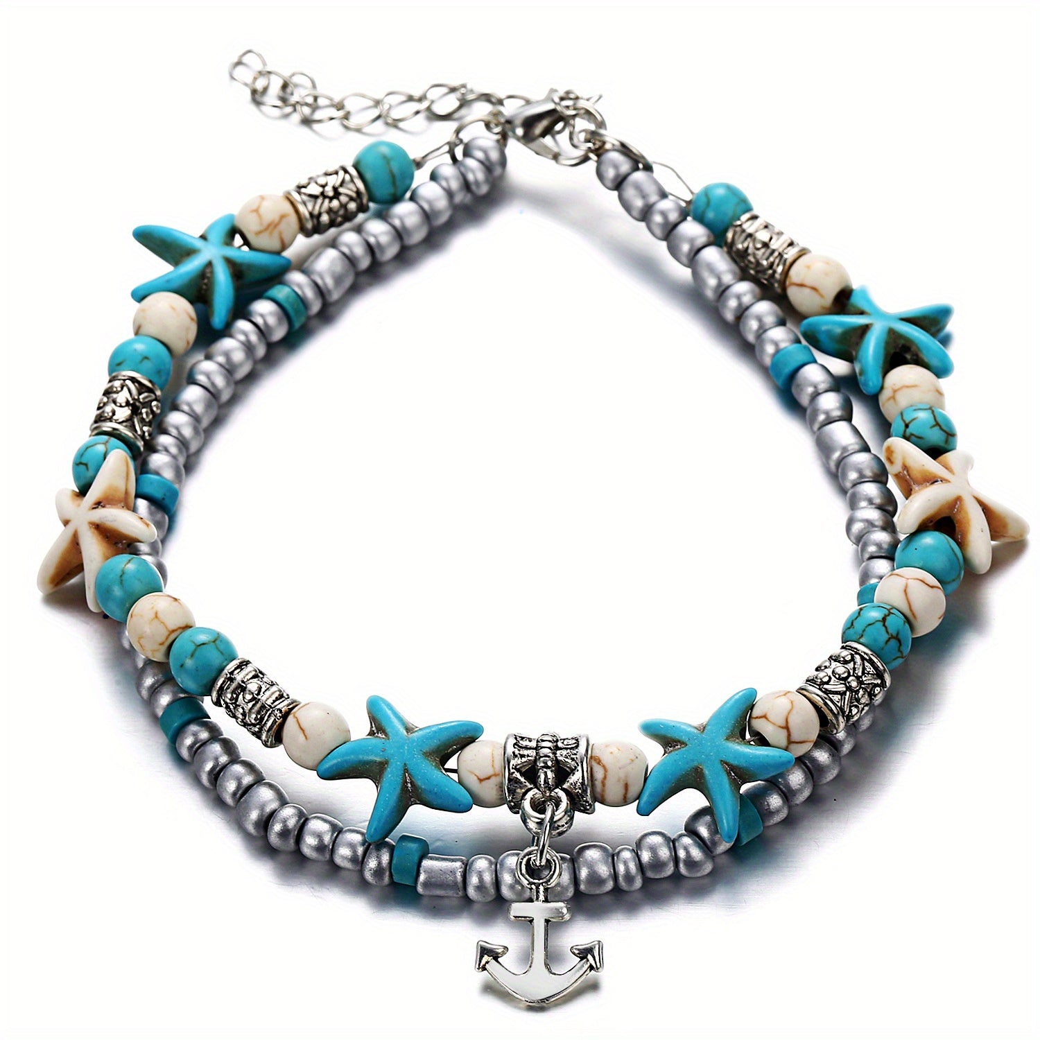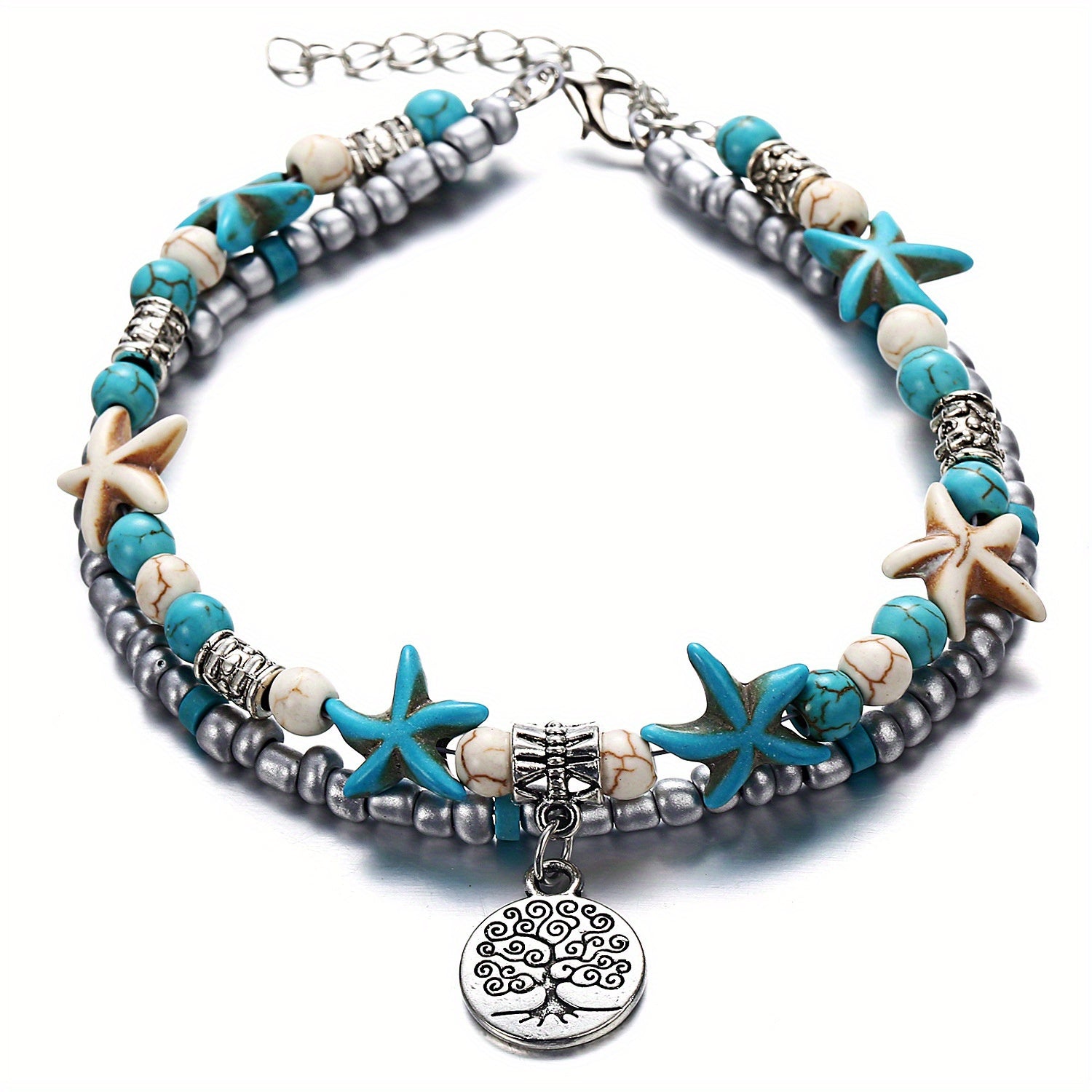 Adorn your wrist with this charming ocean-inspired bracelet featuring starfish, sea turtle, and elephant charms. A perfect gift for women and girls.