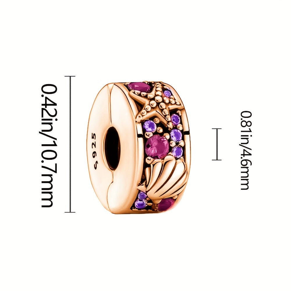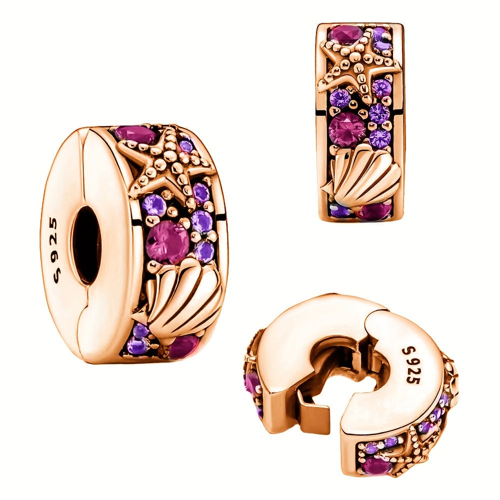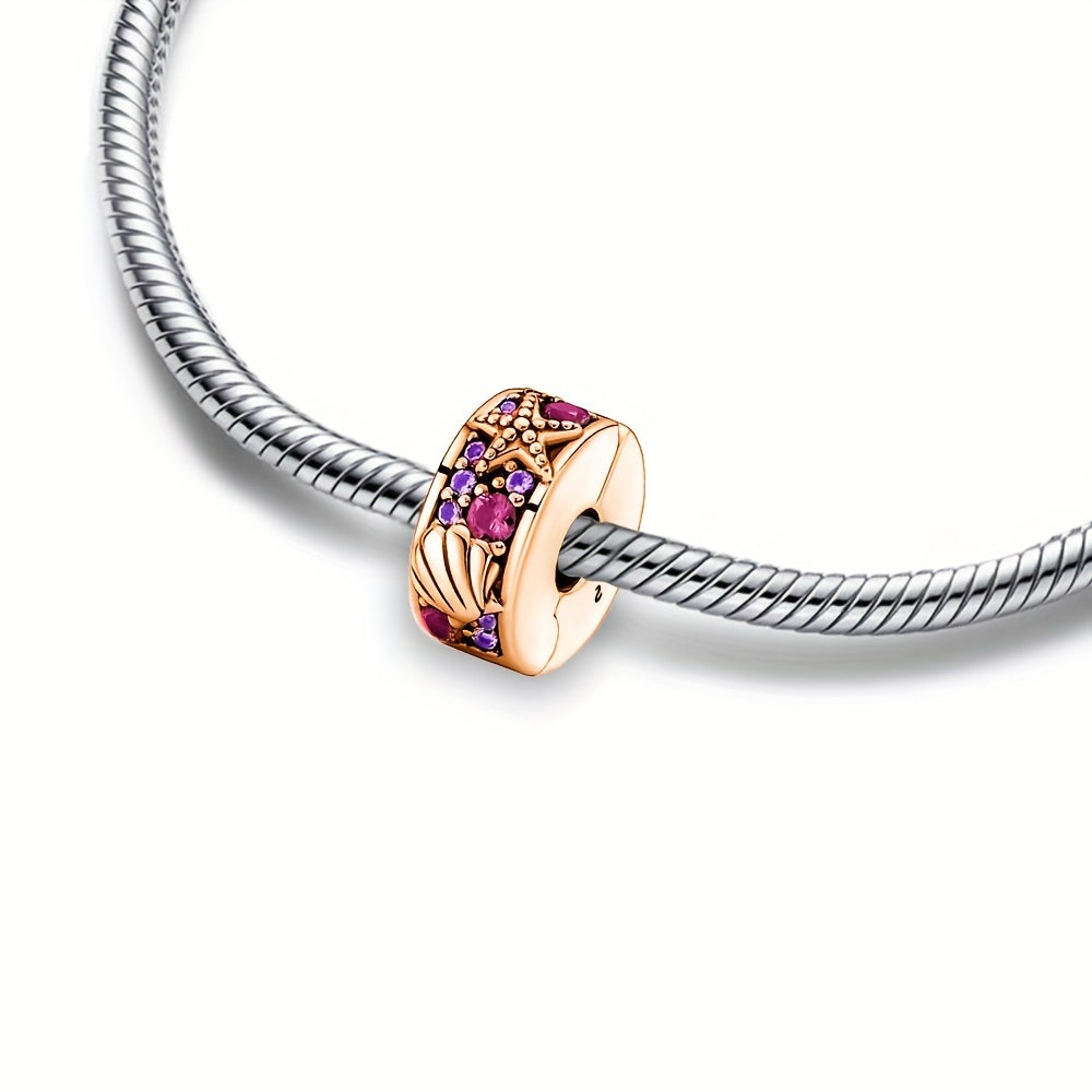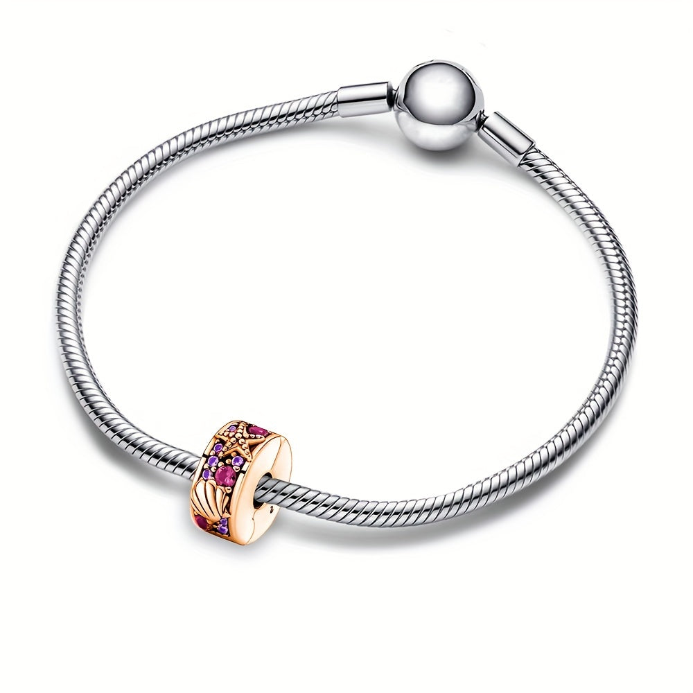 Beautiful charm pendant featuring starfish and shell shape pattern with synthetic gems inlaid, made of 925 silver loose beads.