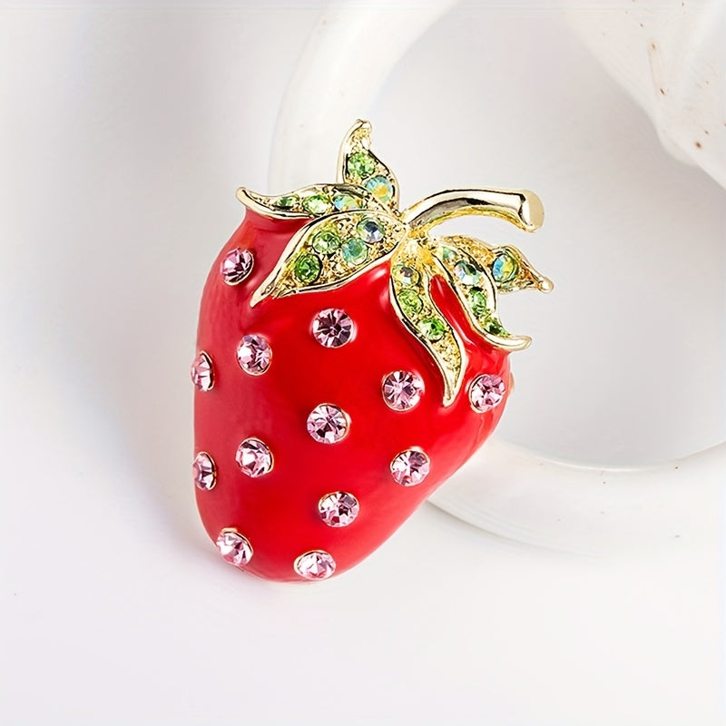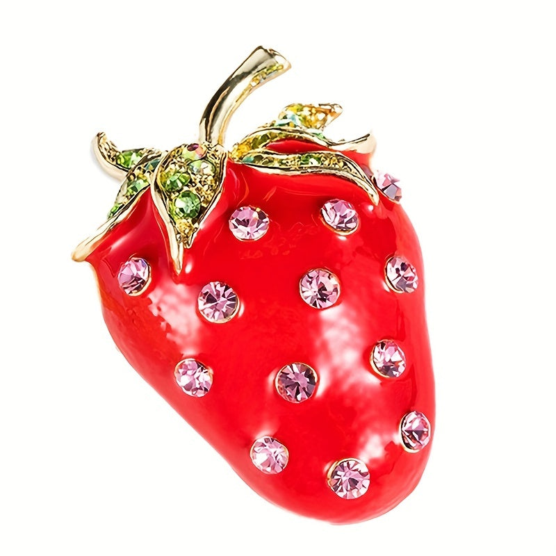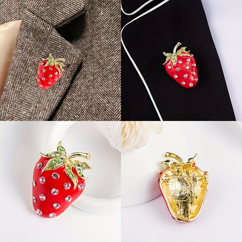 Add a touch of elegance to your outfit with this strawberry brooch pin featuring rhinestones. Perfect for shirts, suits, cardigans, and scarves.