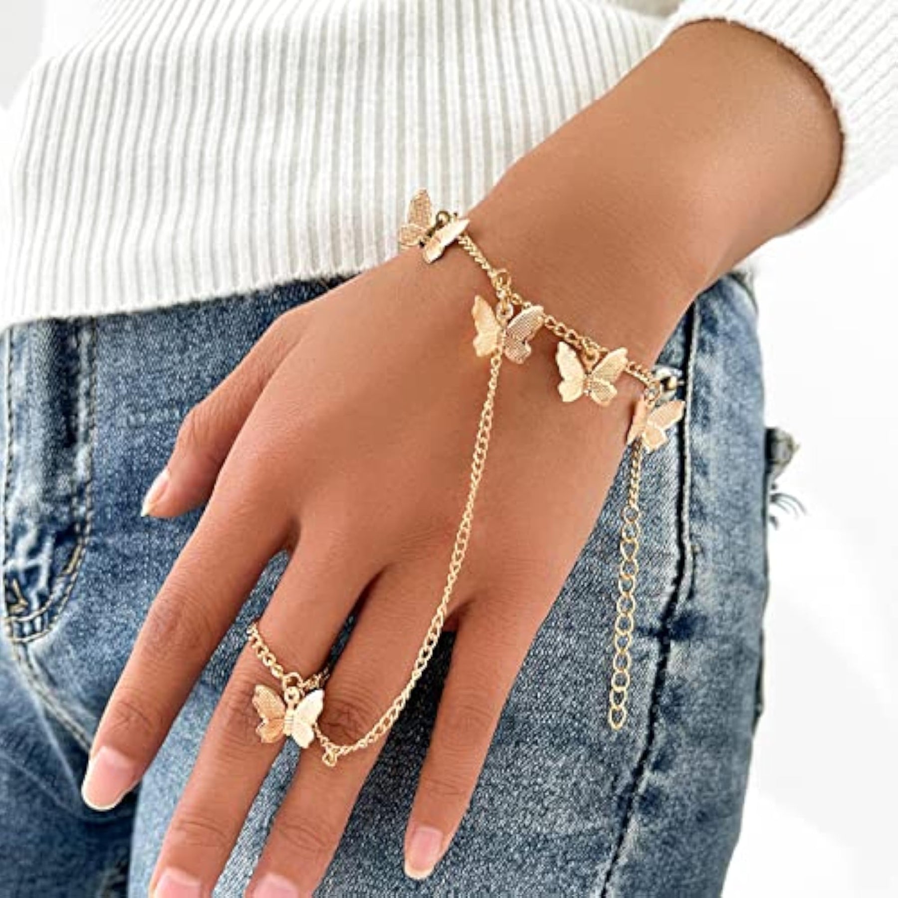 Elevate your look with this stunning gold plated ring bracelet that adds a touch of elegance to any outfit.
