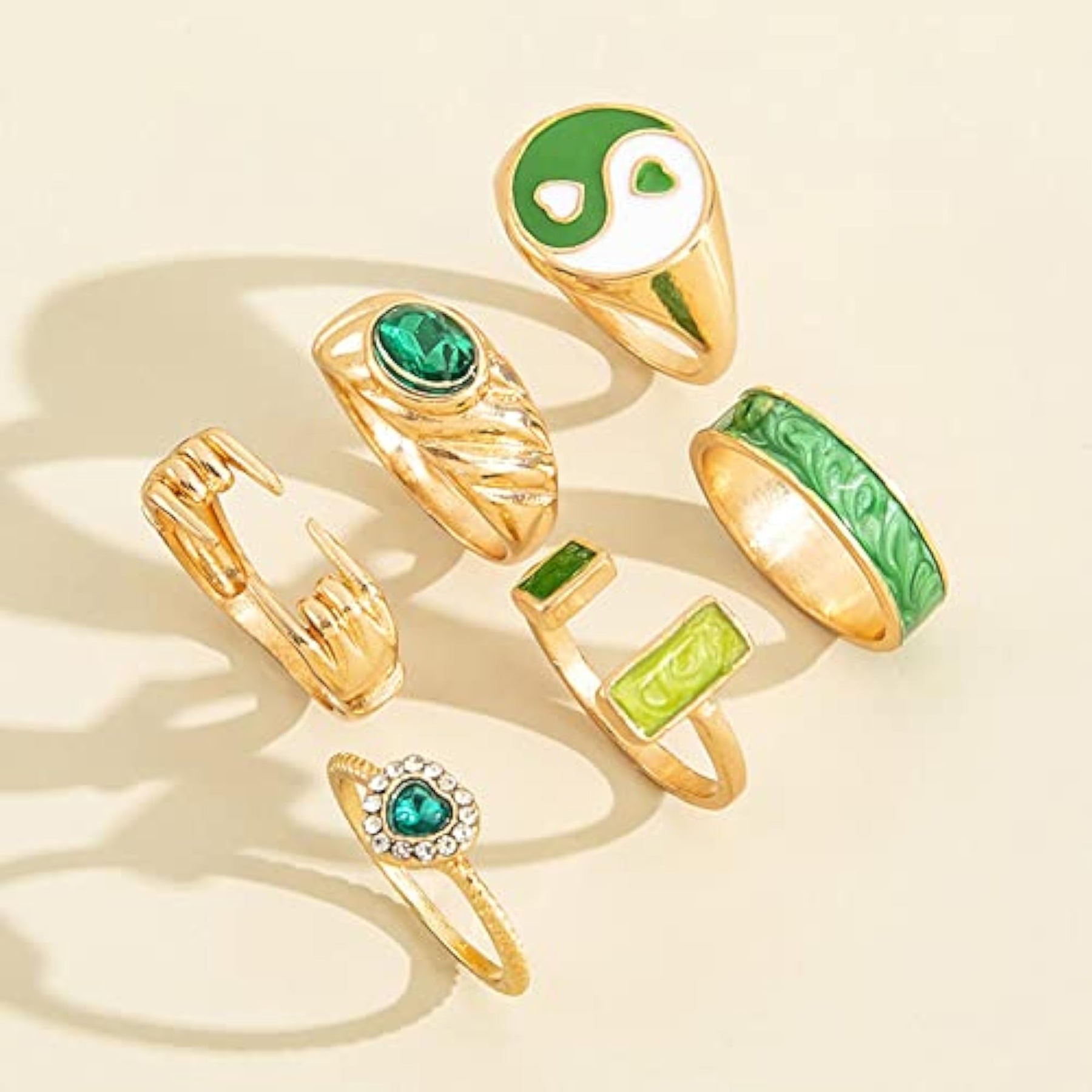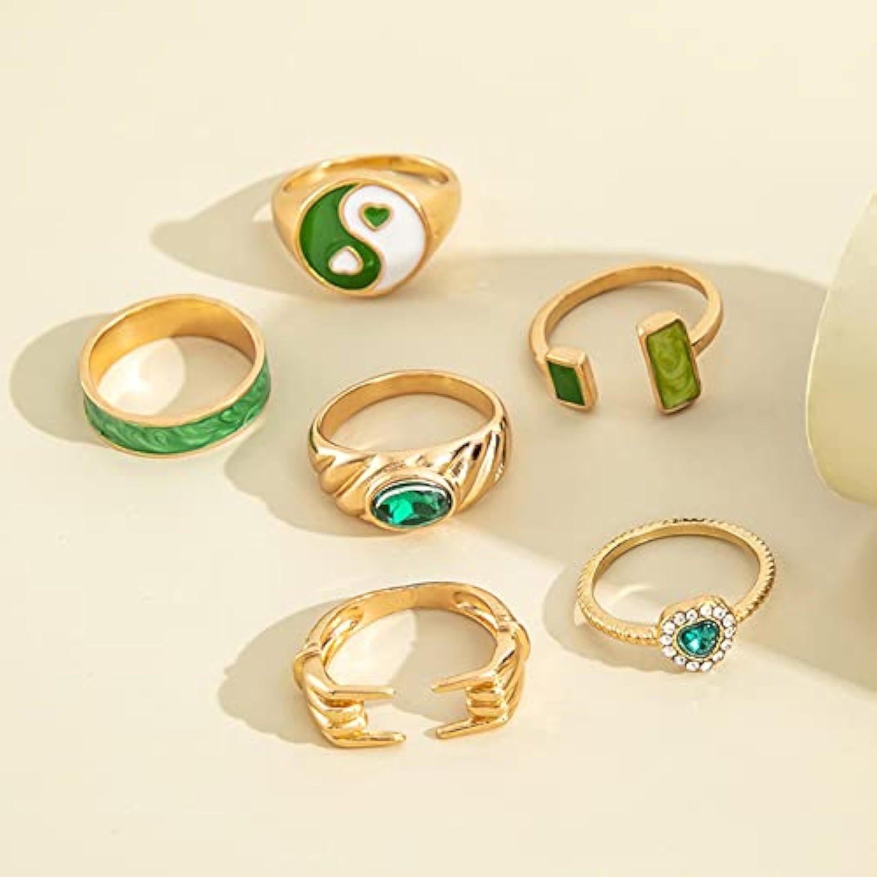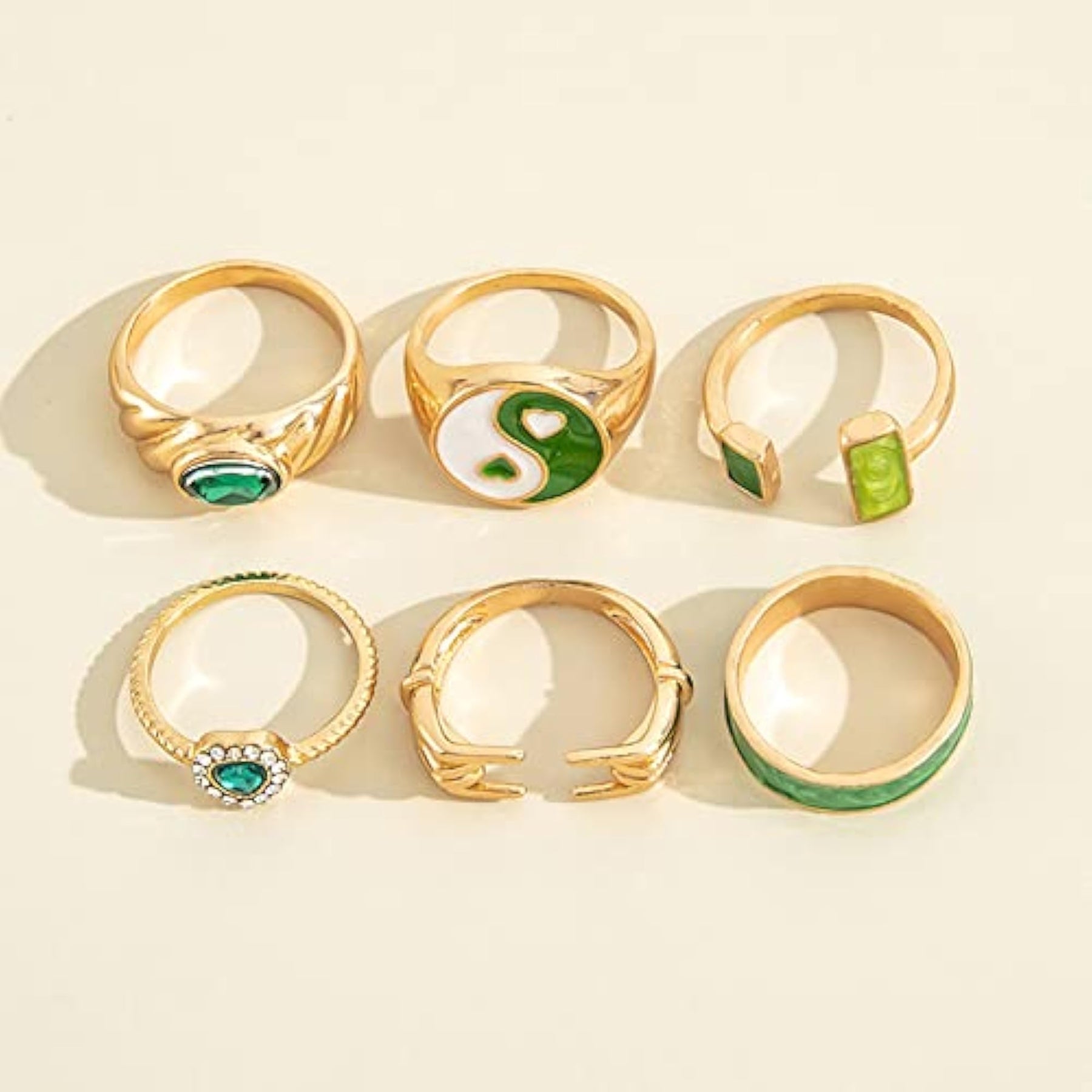 Enhance your style with this set of 6 elegant finger rings. Perfect for any occasion, these rings are versatile and trendy.