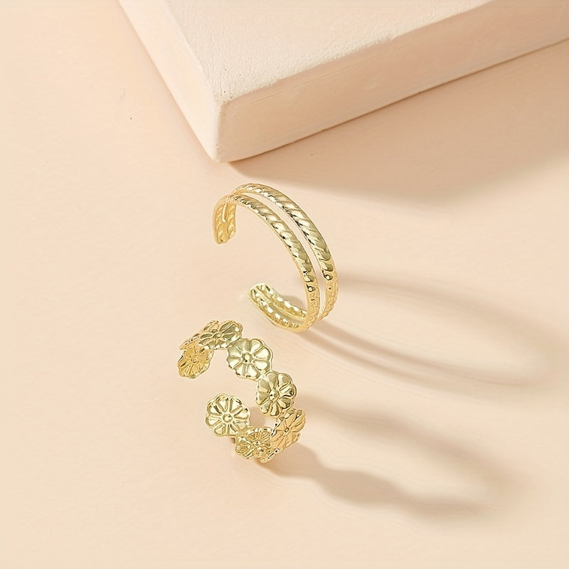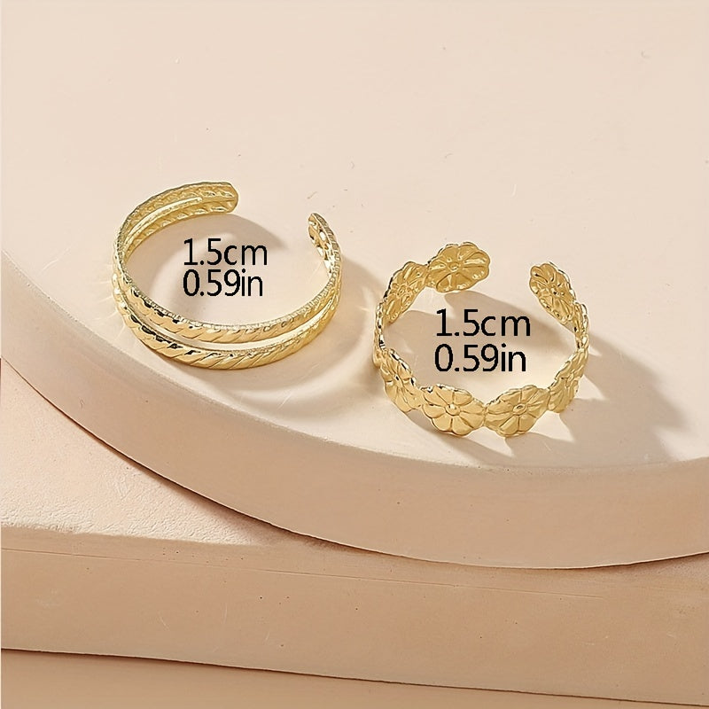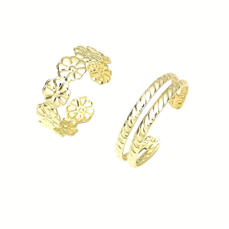 Upgrade your beach look with this stylish toe ring set featuring flower shape patterns. These adjustable foot rings are perfect for summer vibes.