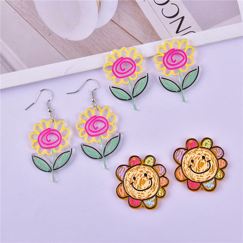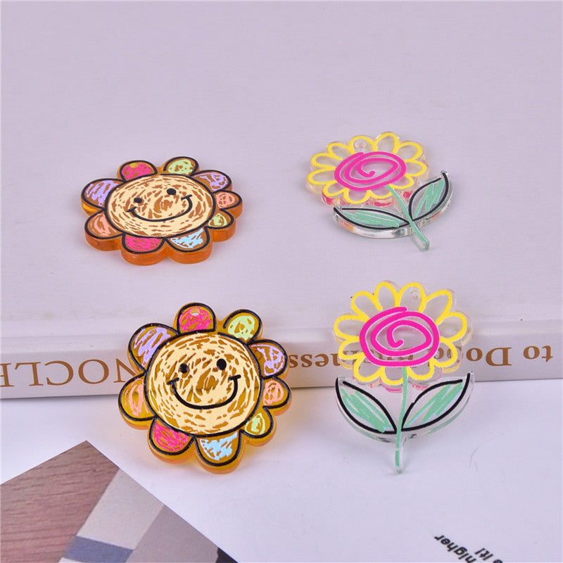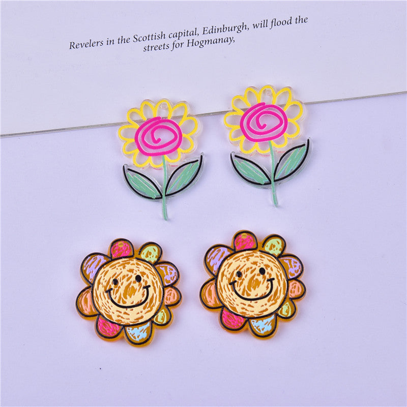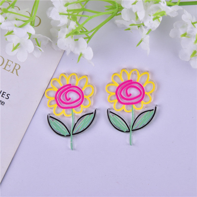 Create your own unique jewelry pieces with these beautiful sunflower chrysanthemum acrylic pendant earrings and necklace. Perfect for DIY projects!