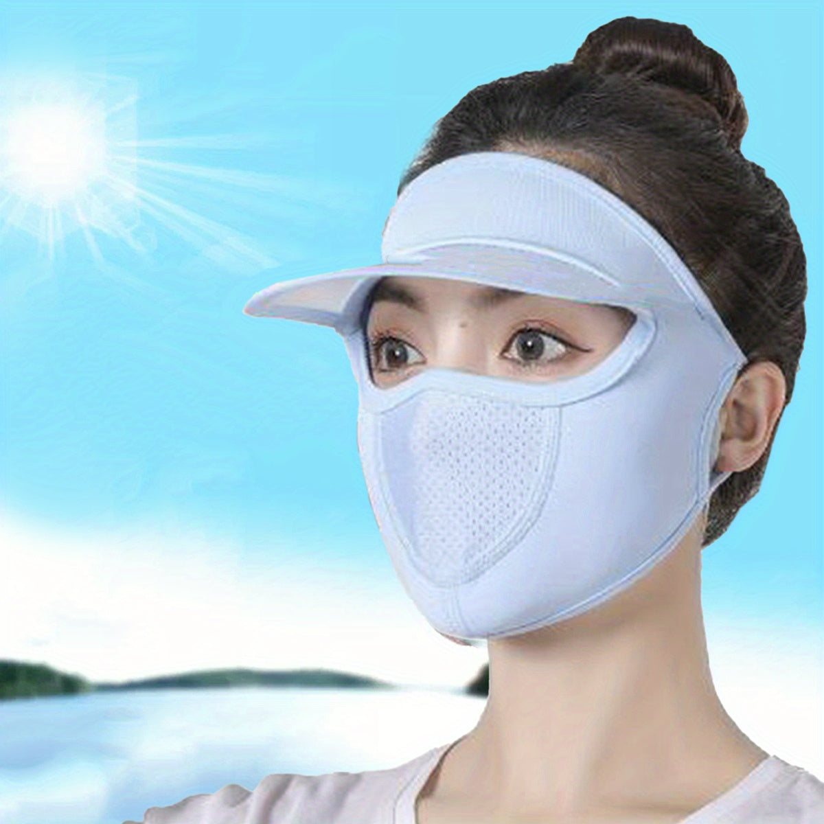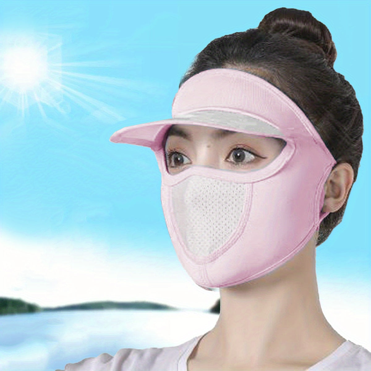 Stay protected from UV rays with this solid sunscreen mask featuring a brim for added coverage. Perfect for outdoor activities like cycling.