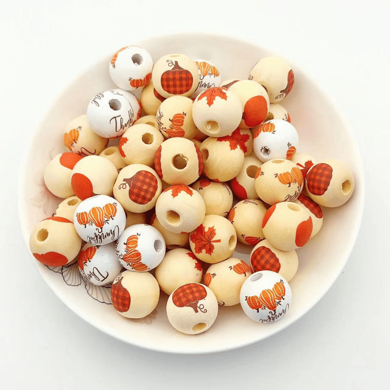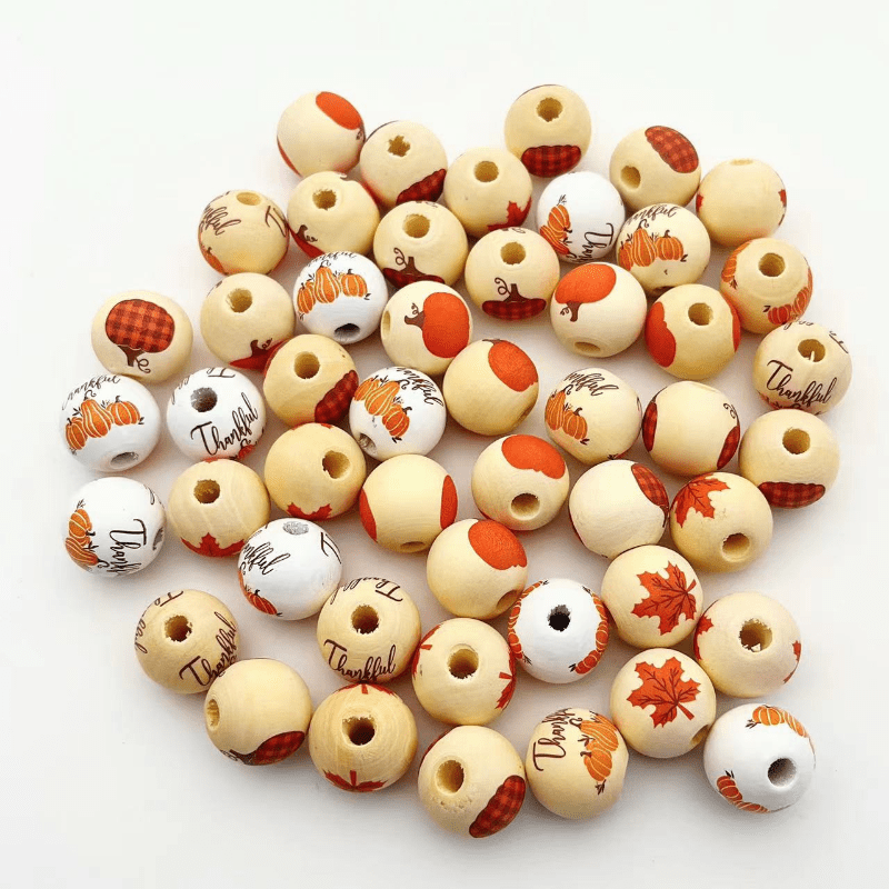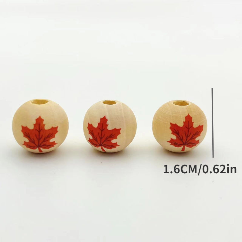 Add a touch of autumn to your jewelry with these wooden beads featuring maple leaf and pumpkin designs. Perfect for Thanksgiving crafts and DIY projects.