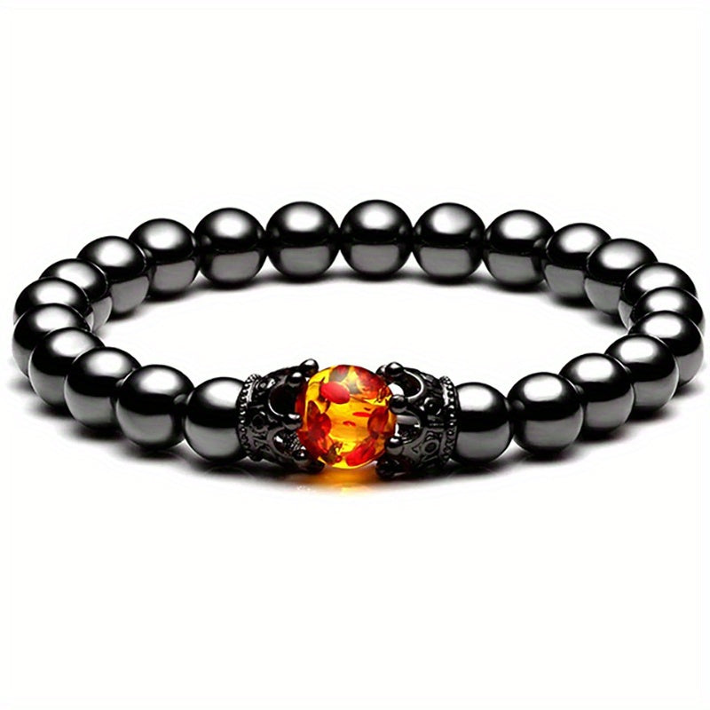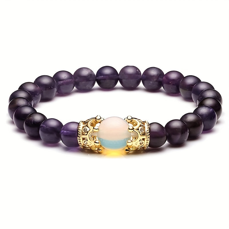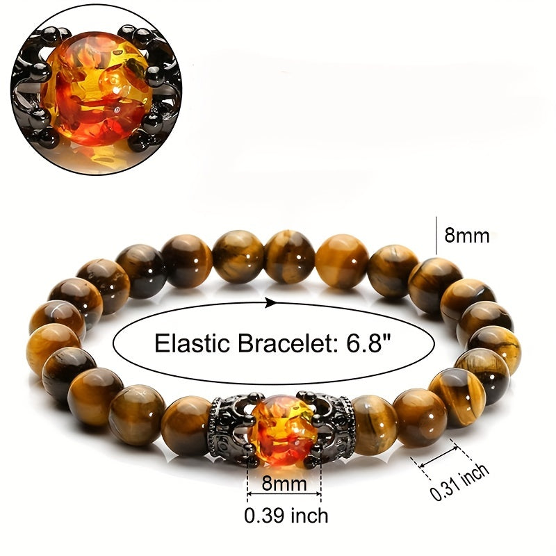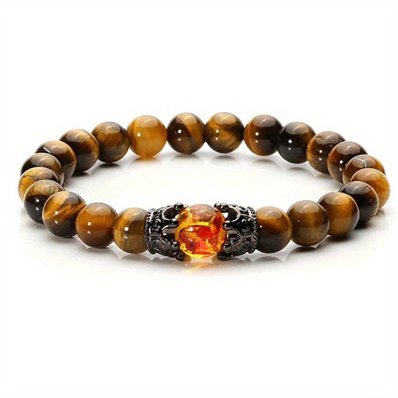 This bracelet features natural tiger eye stone, amethyst, and faux volcanic stone beads. Perfect for couples or individuals looking for a stylish accessory.