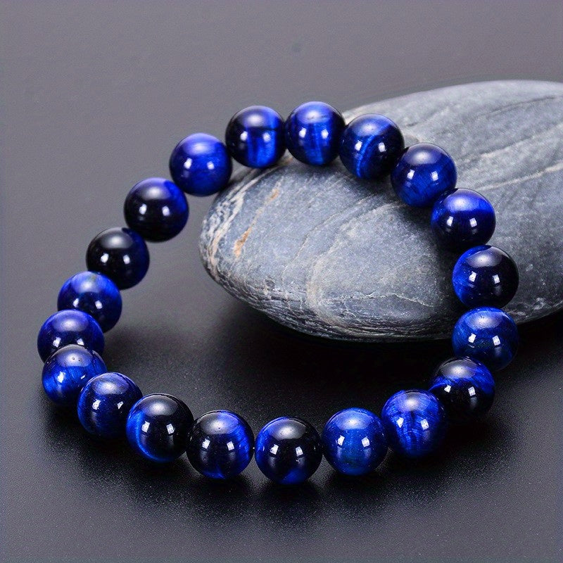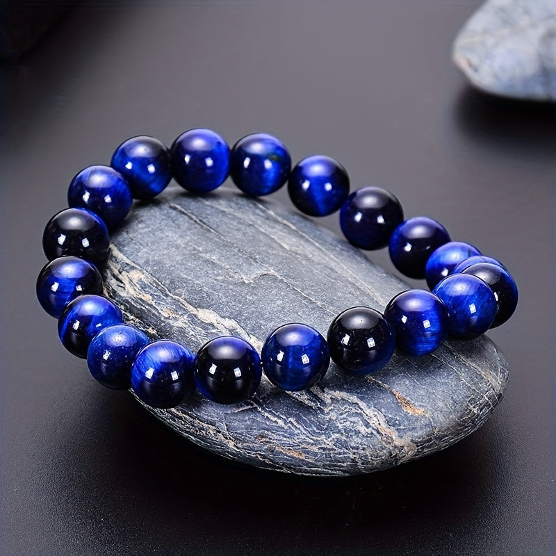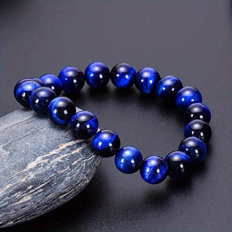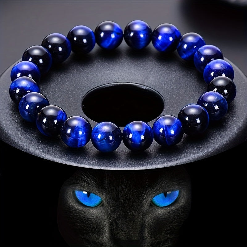This natural Tiger Eye stone bracelet is a stylish accessory for men. The Eagle Eye stone Cat Eye design adds a unique touch to your outfit. Available in various sizes for a customized fit.