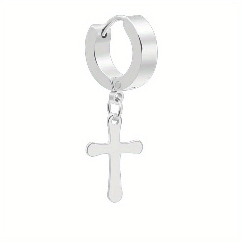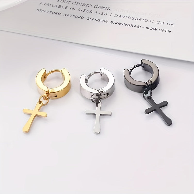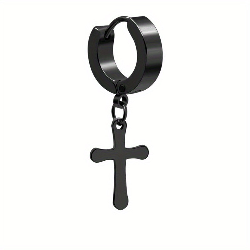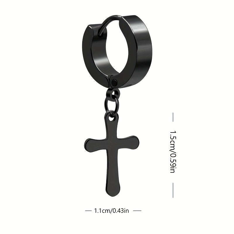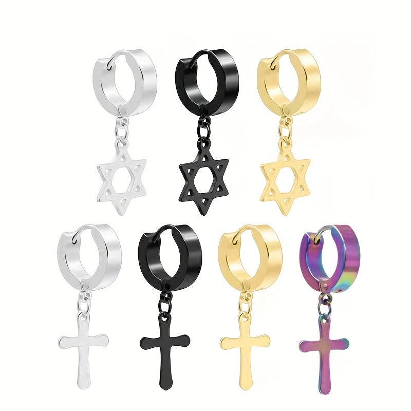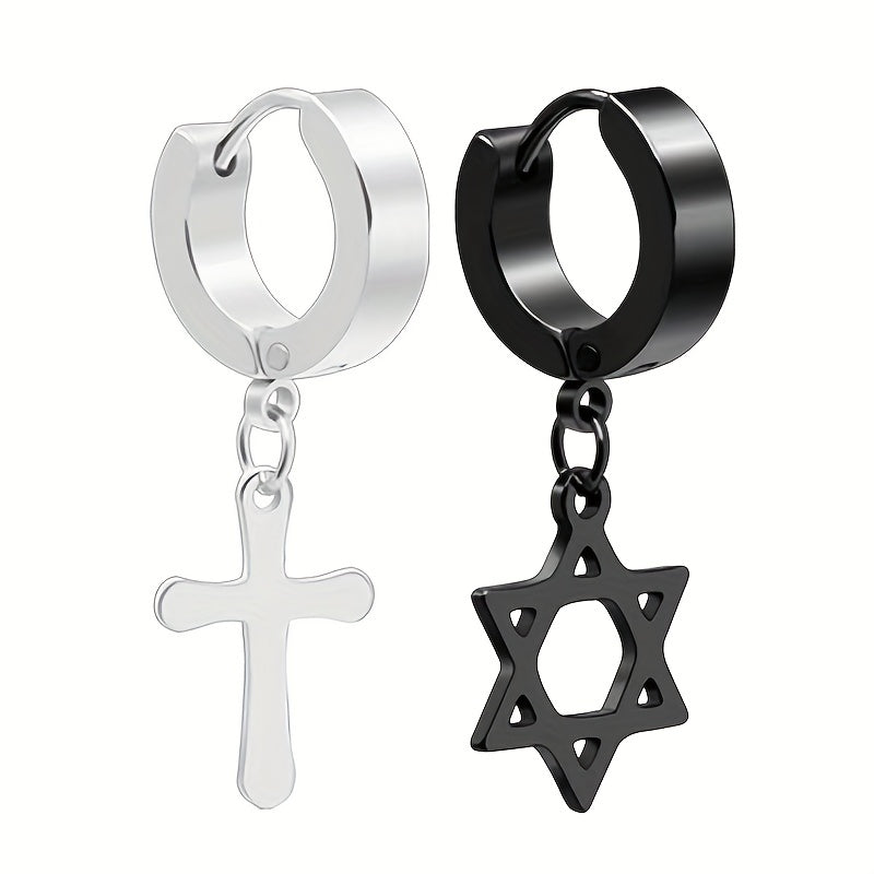 Add a touch of edgy style to your look with these stainless steel drop earrings featuring a star cross pendant.
