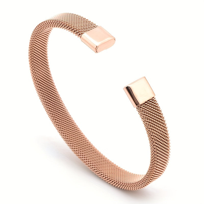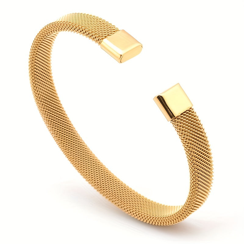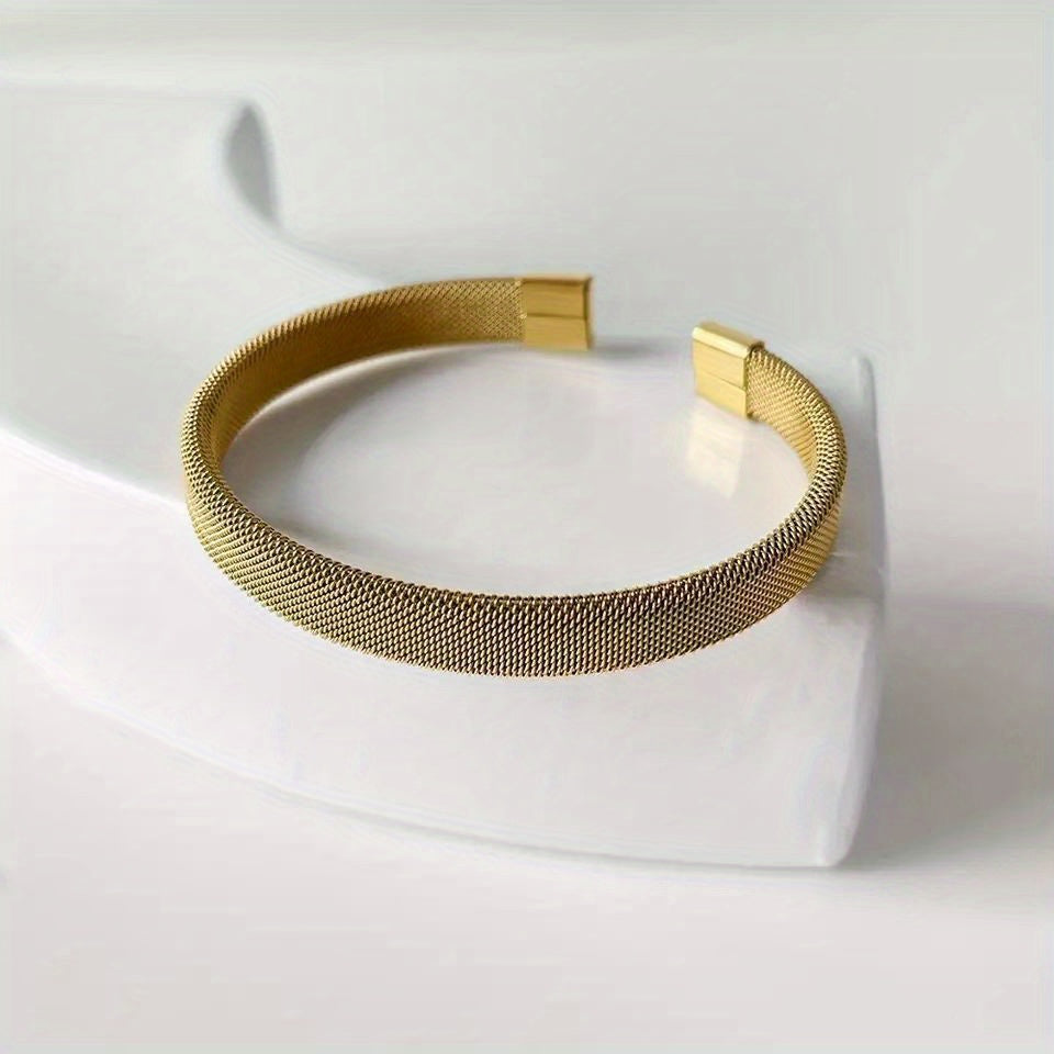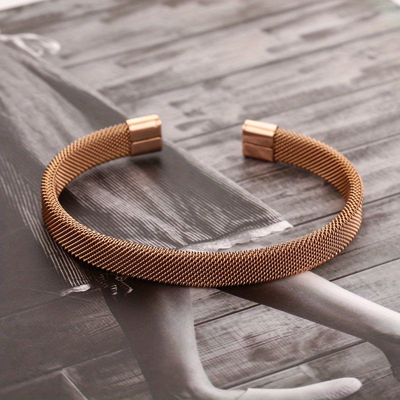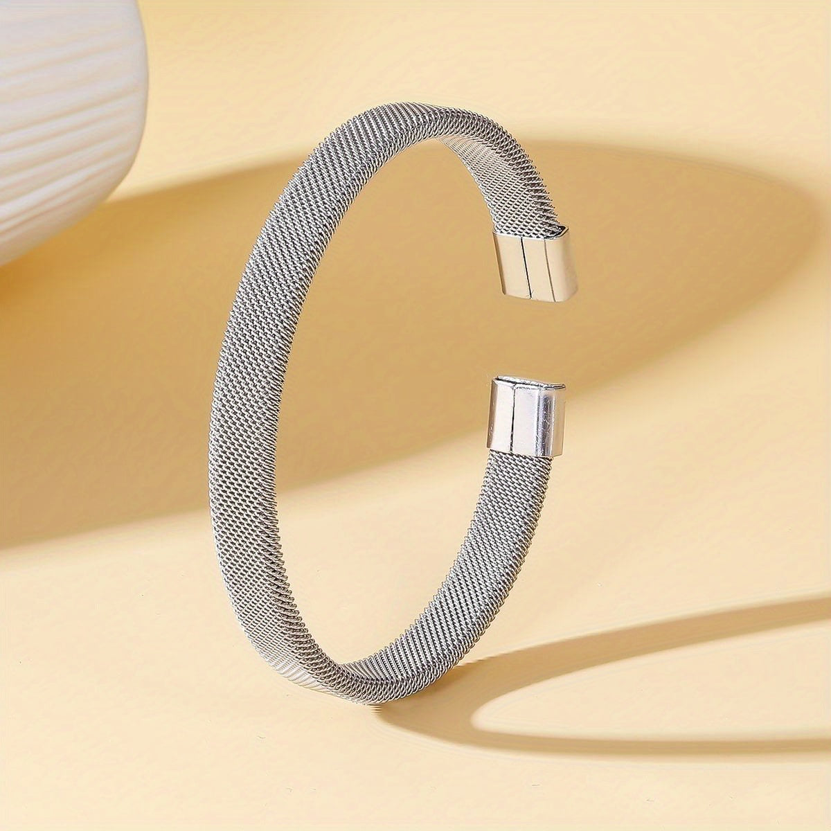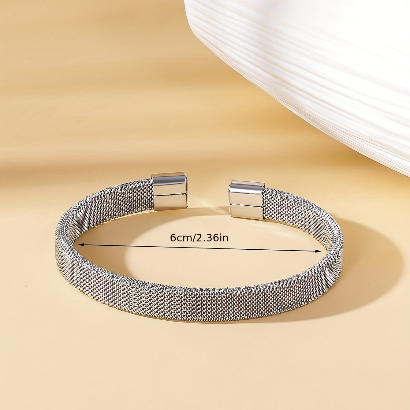 This titanium steel elastic bracelet features a stainless steel C-shaped mesh bangle design, perfect for both men and women.