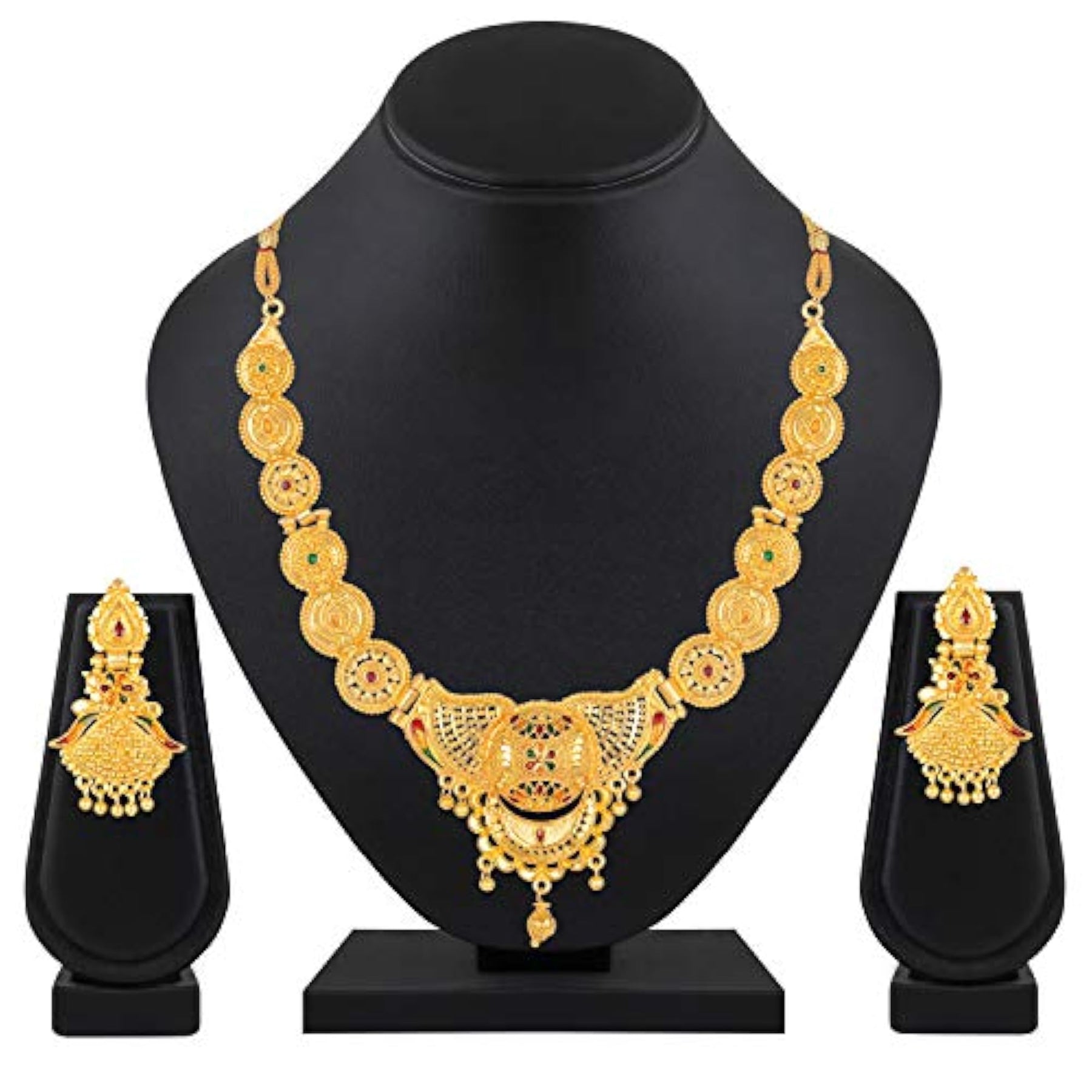 Exquisite choker necklace set with gram plated finish for traditional occasions.