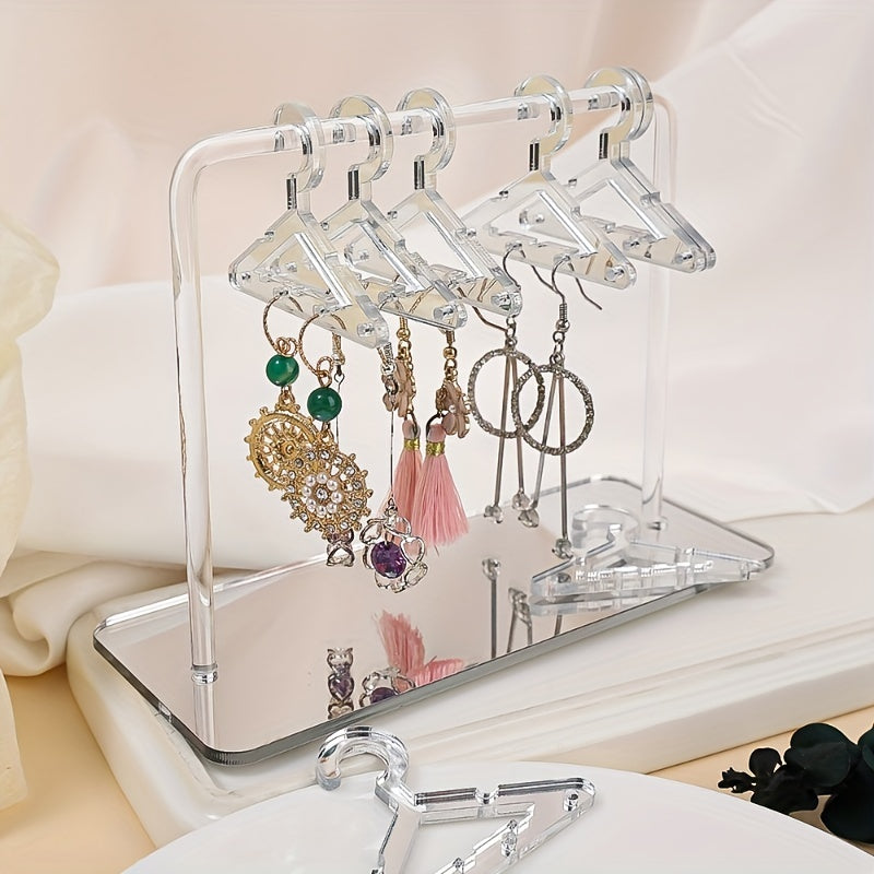 Keep your earrings and jewelry accessories neatly displayed with this clear acrylic holder. The mini hangers provide convenient hanging storage.