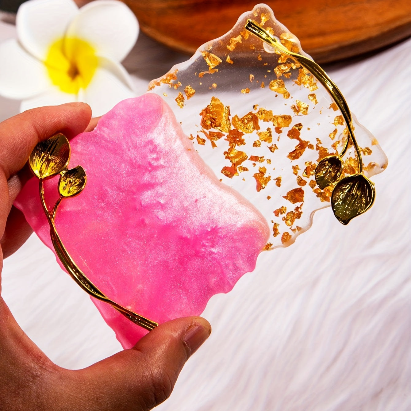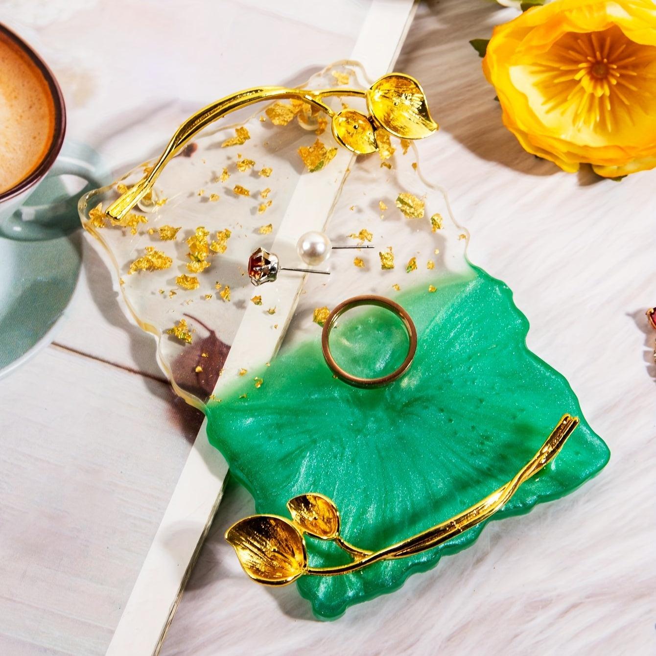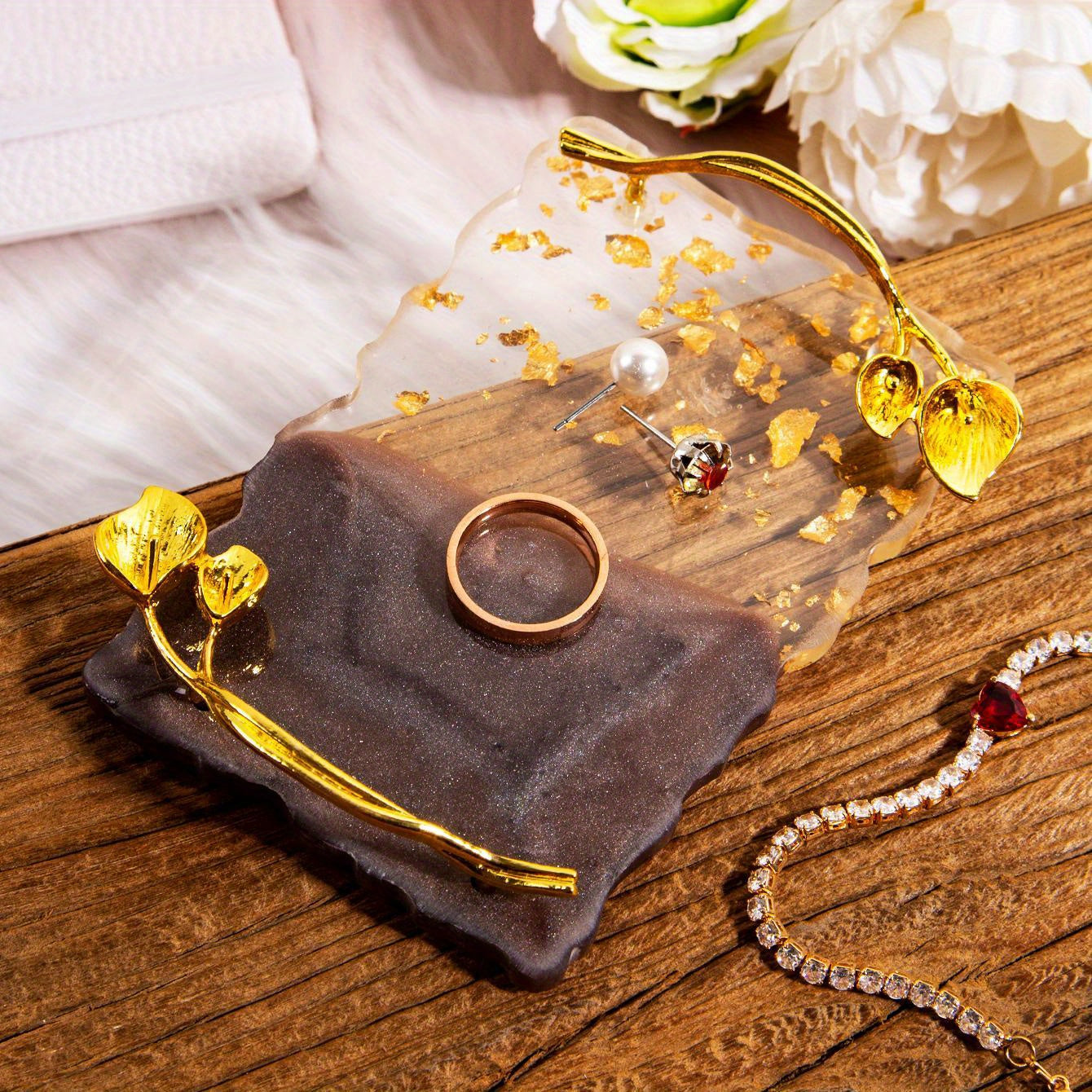 Add a touch of elegance to your jewelry display with this delicate transparent tray featuring golden edge painting.