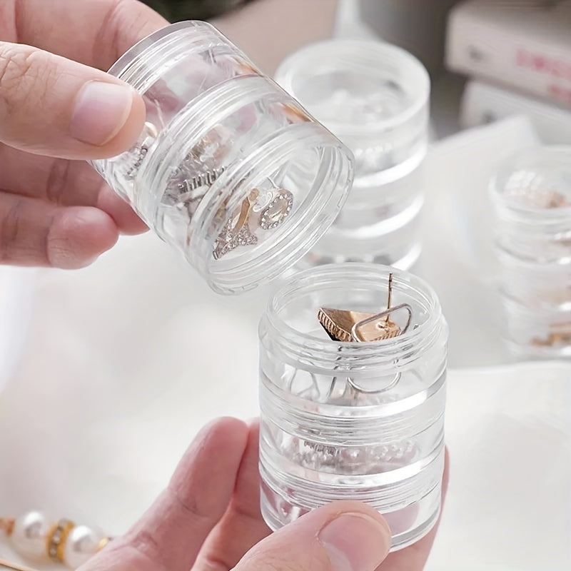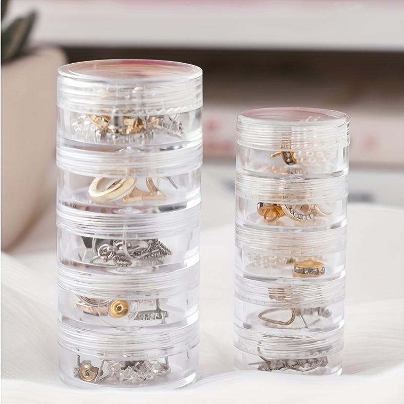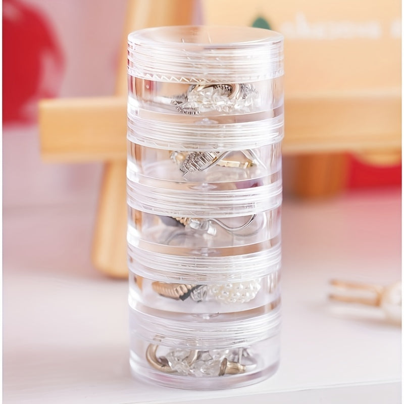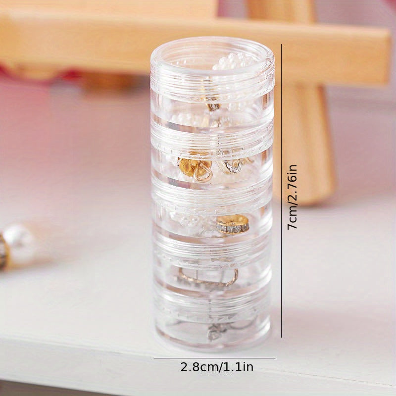 This transparent round box is ideal for storing earrings, rings, necklaces, and medicines while traveling.