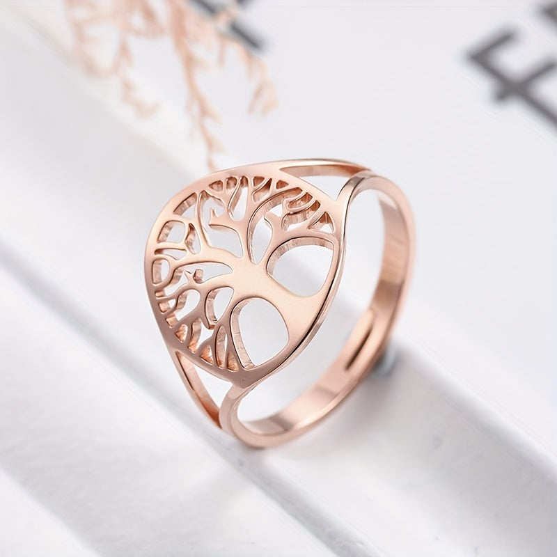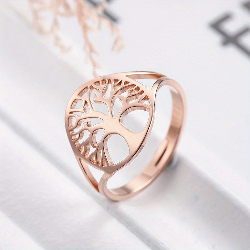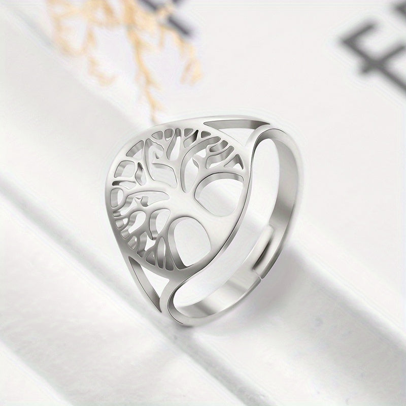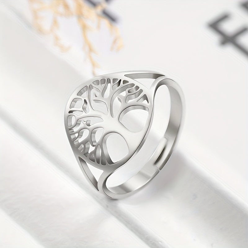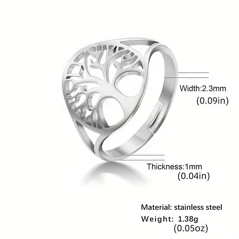 This adjustable ring features a Tree of Life design, made of durable stainless steel. Perfect amulet jewelry for men, ideal for anniversary gift.