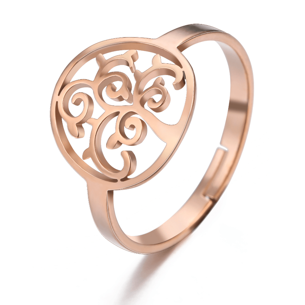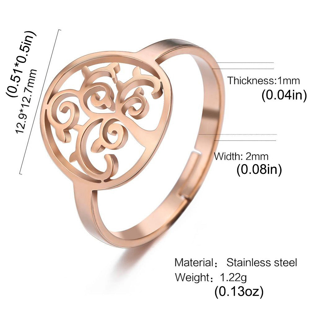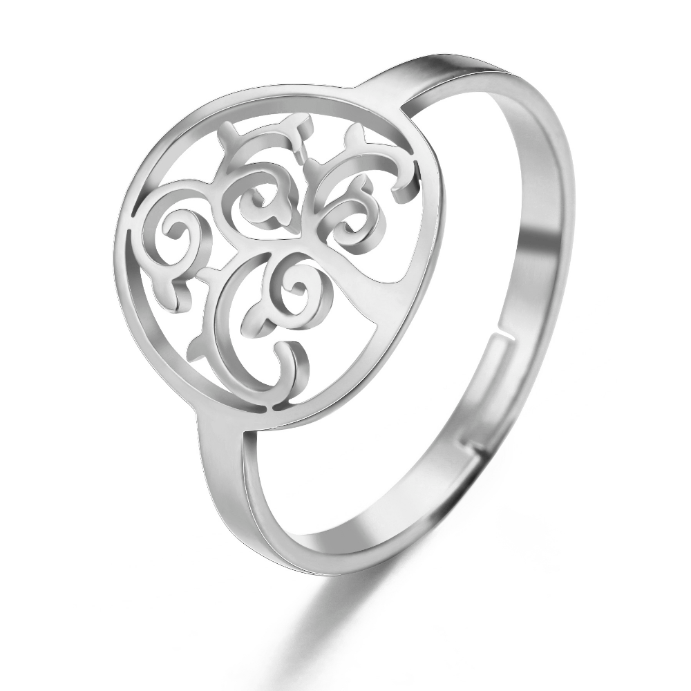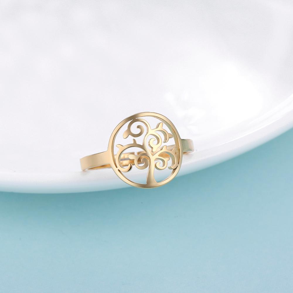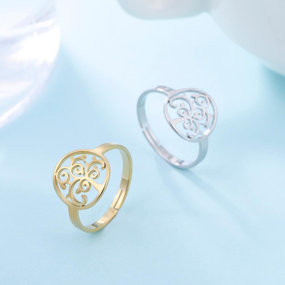 Tree Of Life Adjustable Rings For Women Stainless Steel Silver Open Ring Jewelry