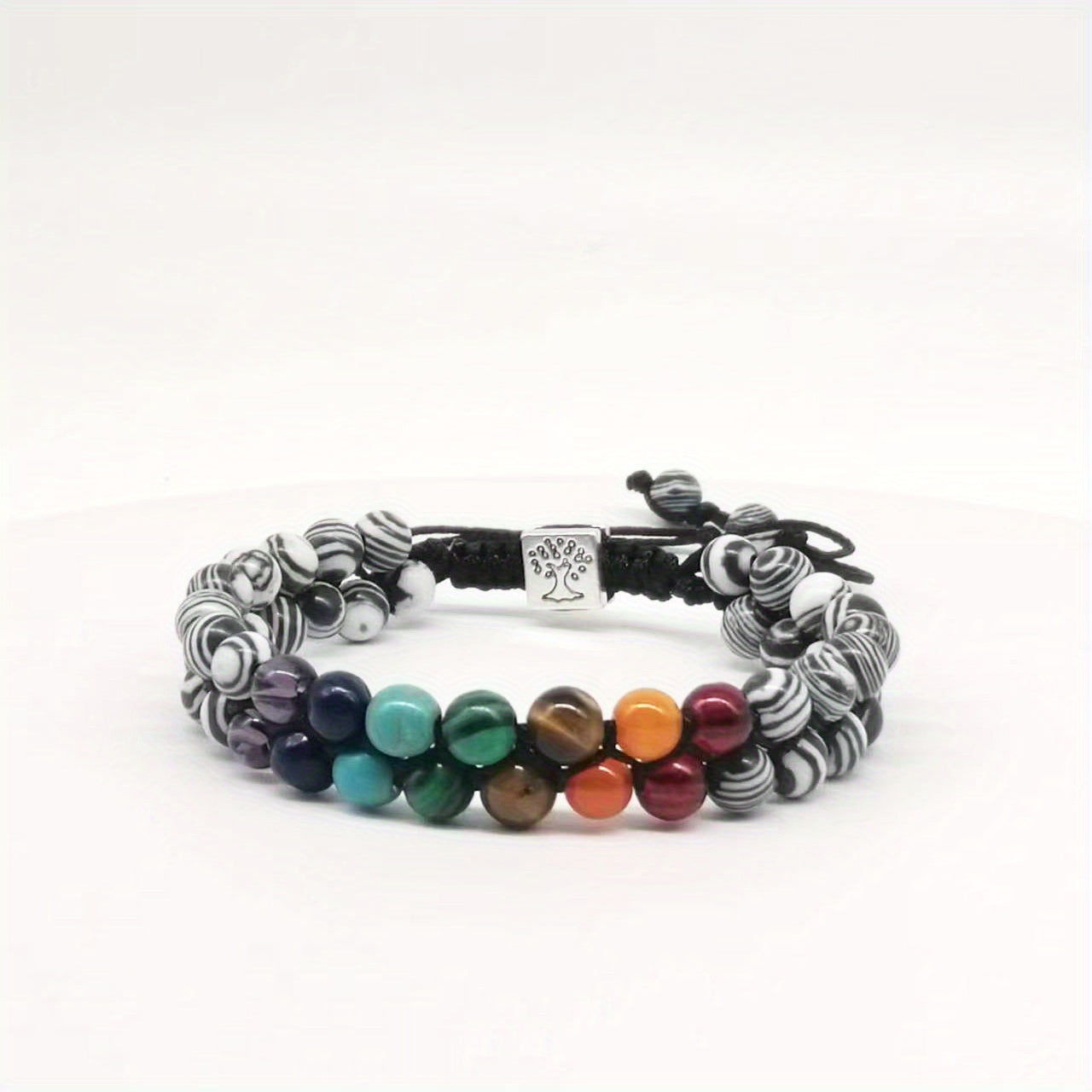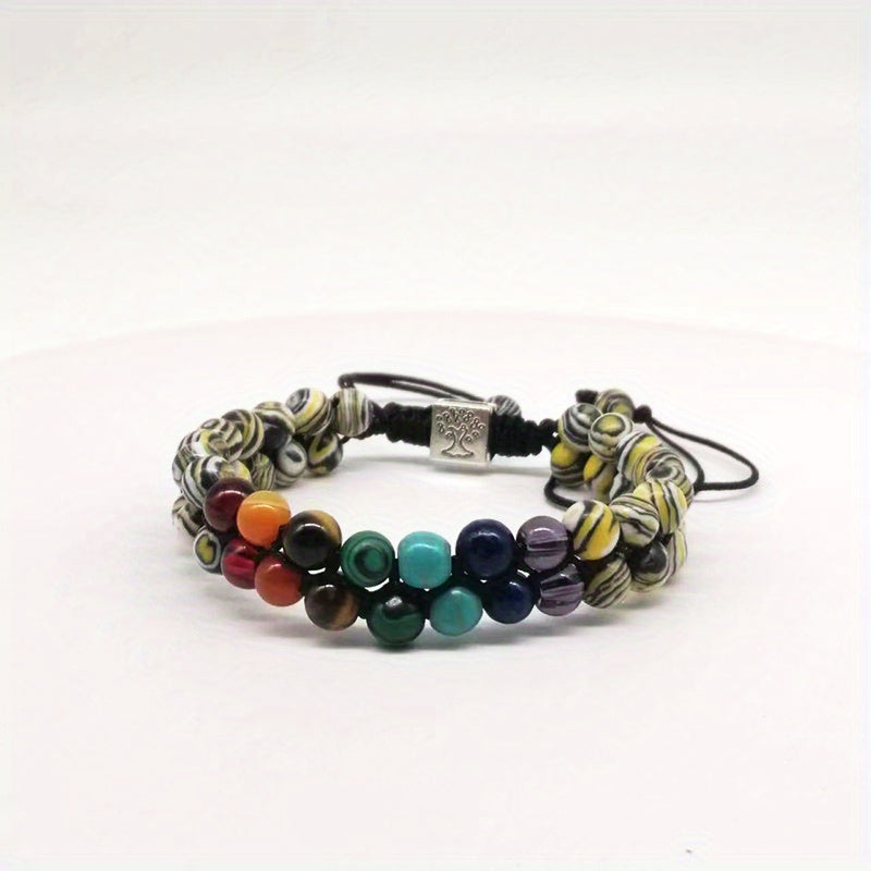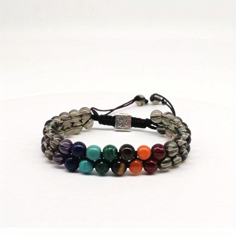 This double-layer bracelet features natural crystal agate beads. It embodies a Tree Of Life design for a unique and stylish look.